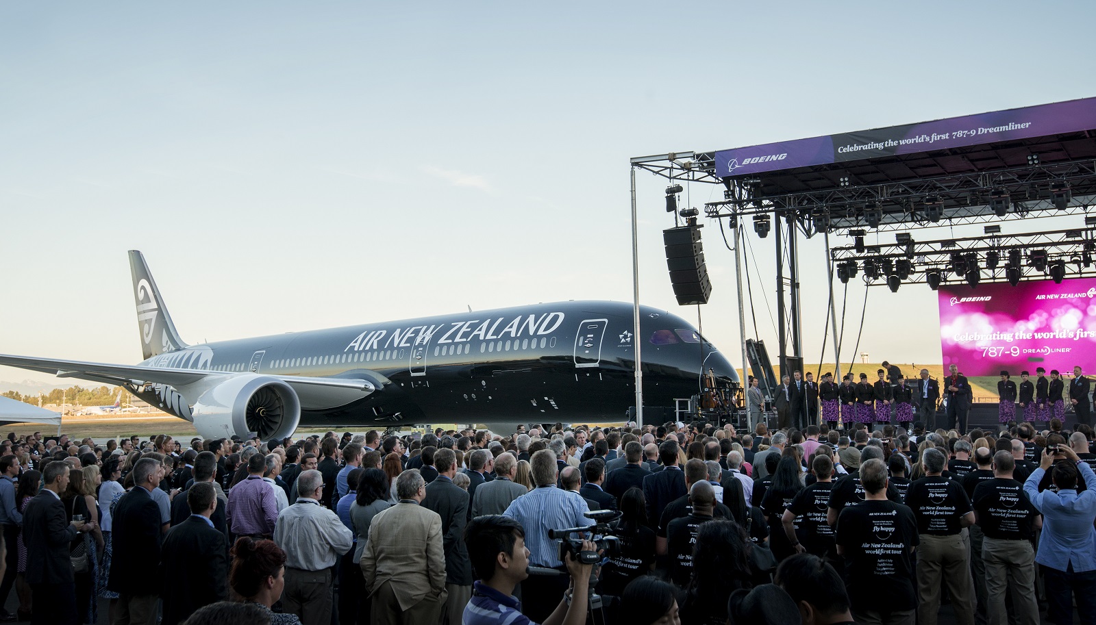 A Boeing celebrou a entrega do primeiro 787-9 produzido, destinado a satisfazer a encomenda de 10 unidades realizadas pela Air New Zealand. Equipado com dois reactores Rolls-Royce, o novo 787-9 irá garantir a modernização necessária pela companhia aérea para conseguir tornar a sua frota mais eficiente. Equipado com uma pintura escura específica para a aeronave, a entrega foi celebrada em plena fábrica da Boeing, em Everett, diante de mais de 1000 convidados da marca, bem como da Air New Zealand e outros convidados especiais.