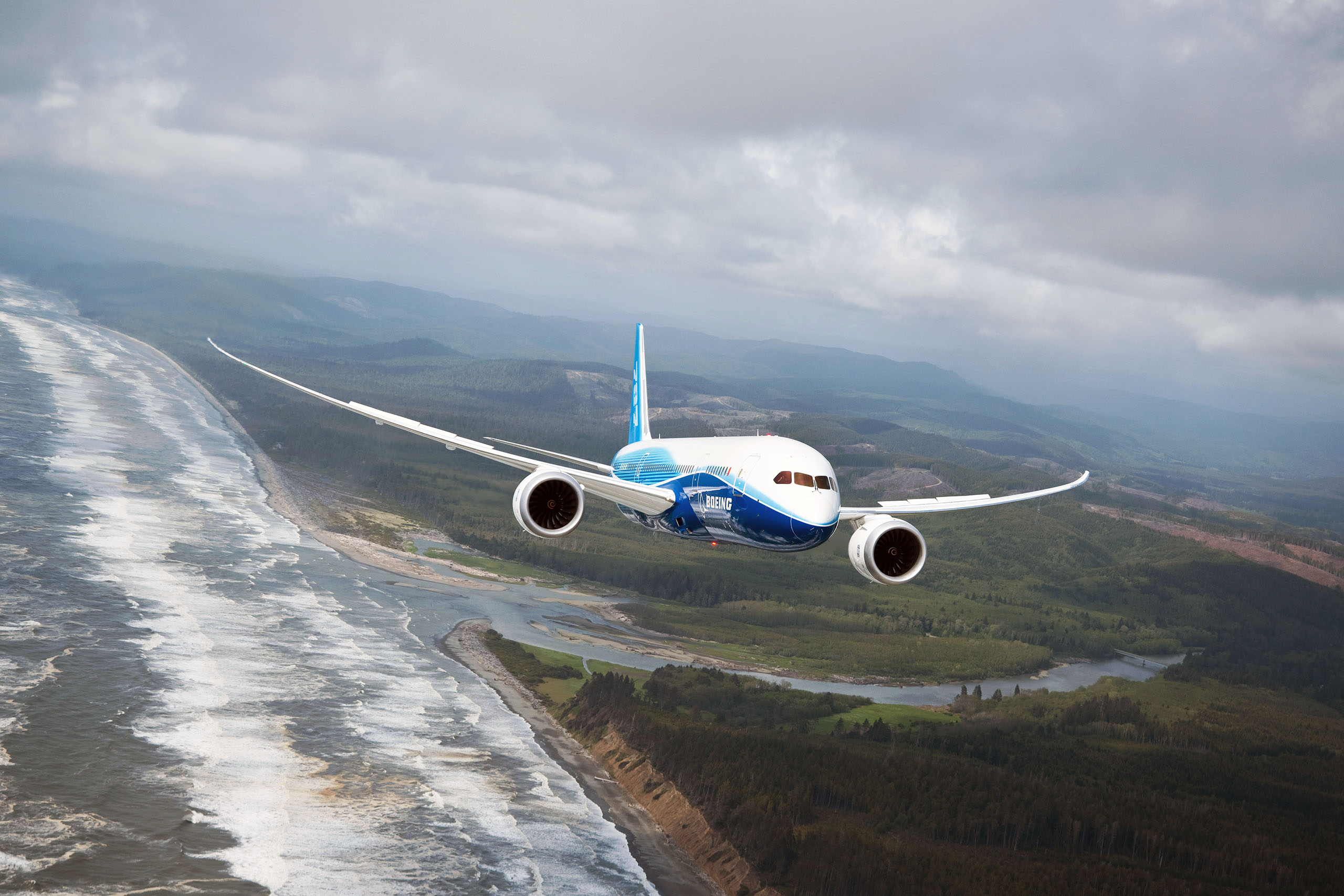 A imagem de hoje é sobre um Boeing 787 Dreamlines a sobrevoar a costa durante um voo de testes.