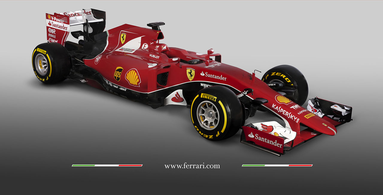 Depois de lhe revelarmos o novo McLaren MP4-30, chega-nos a ver de lhe darmos a conhecer o novo monolugar da Ferrari, o SF15-T, que contará com a presença de Kimi Raikonen e de Sebastian Vettel, que trocou a Red Bull pela Ferrari após uma época de 2014 que não correu da melhor maneira. O monolugar de Maranello apresenta-se este ano com um desenho mais consensual, tendo o nariz uma curvatura mais natural face ao F14T de 2014. Recorrendo ao mesmo esquema de cores que o anterior, a secção traseira foi alvo de várias melhorias, que embora não tenha sido totalmente revelado (o difusor está tapado nas fotos), consegue-se vislumbrar um forte trabalho aerodinâmico junto dos braços da suspensão.