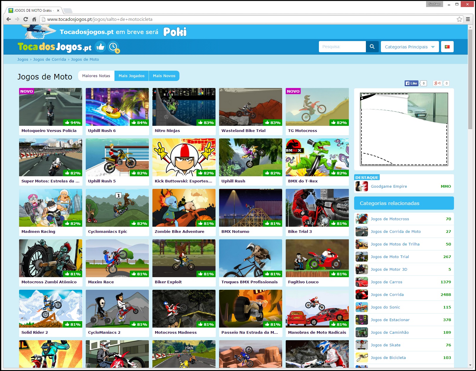 Se está num daqueles dias em que o tempo custa a passar, então a Toca Dos Jogos tem a solução ideal para si. Basta aceder à página principal e escolher um dos milhares de jogos disponíveis dentro das 16 categorias principais existentes. Decidimos experimentar alguns títulos, como o Super Motos: Estrelas da Pista, um dos títulos mais jogados e com melhor nota dentro da categoria dos Jogos de Motos.