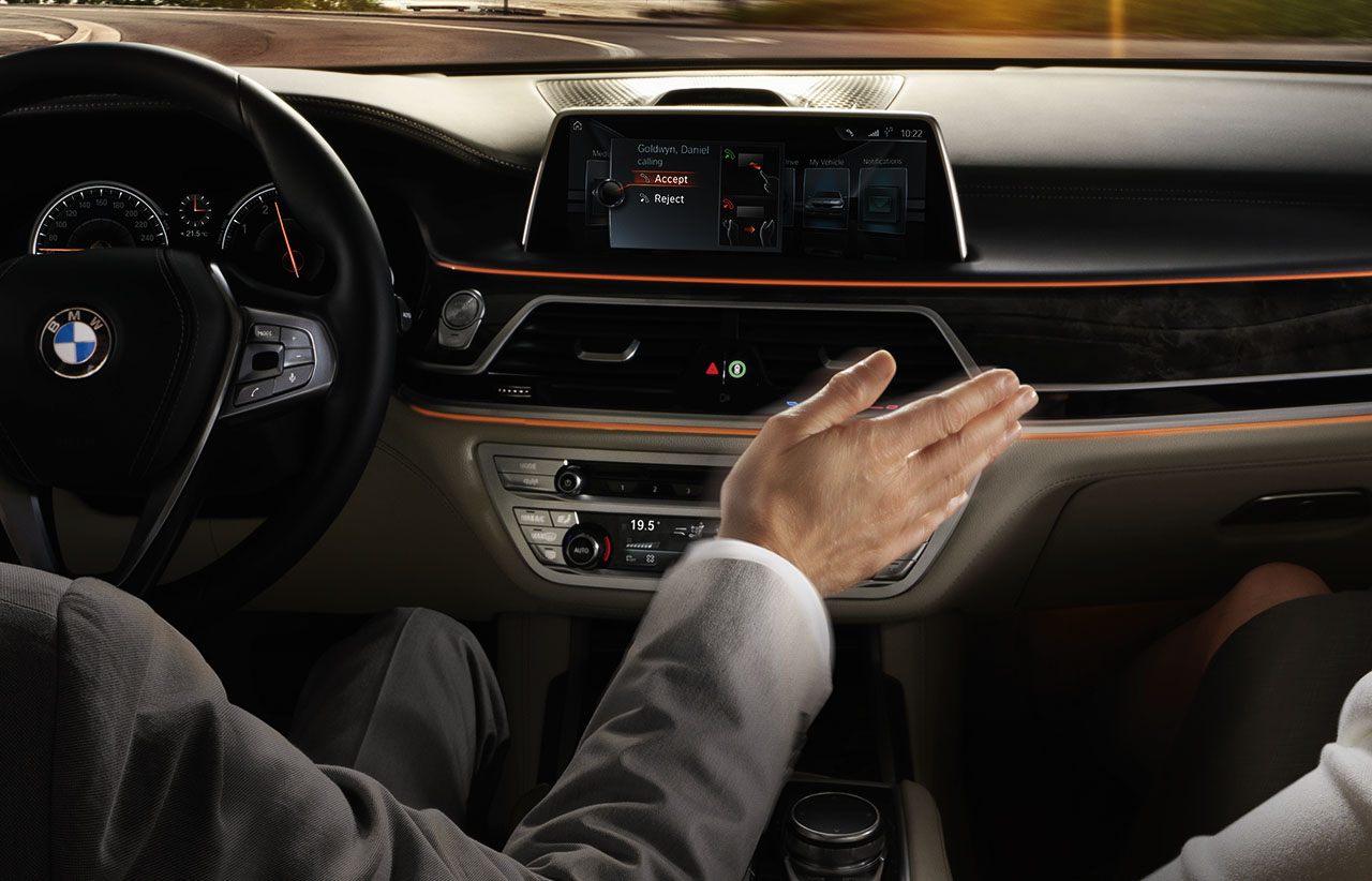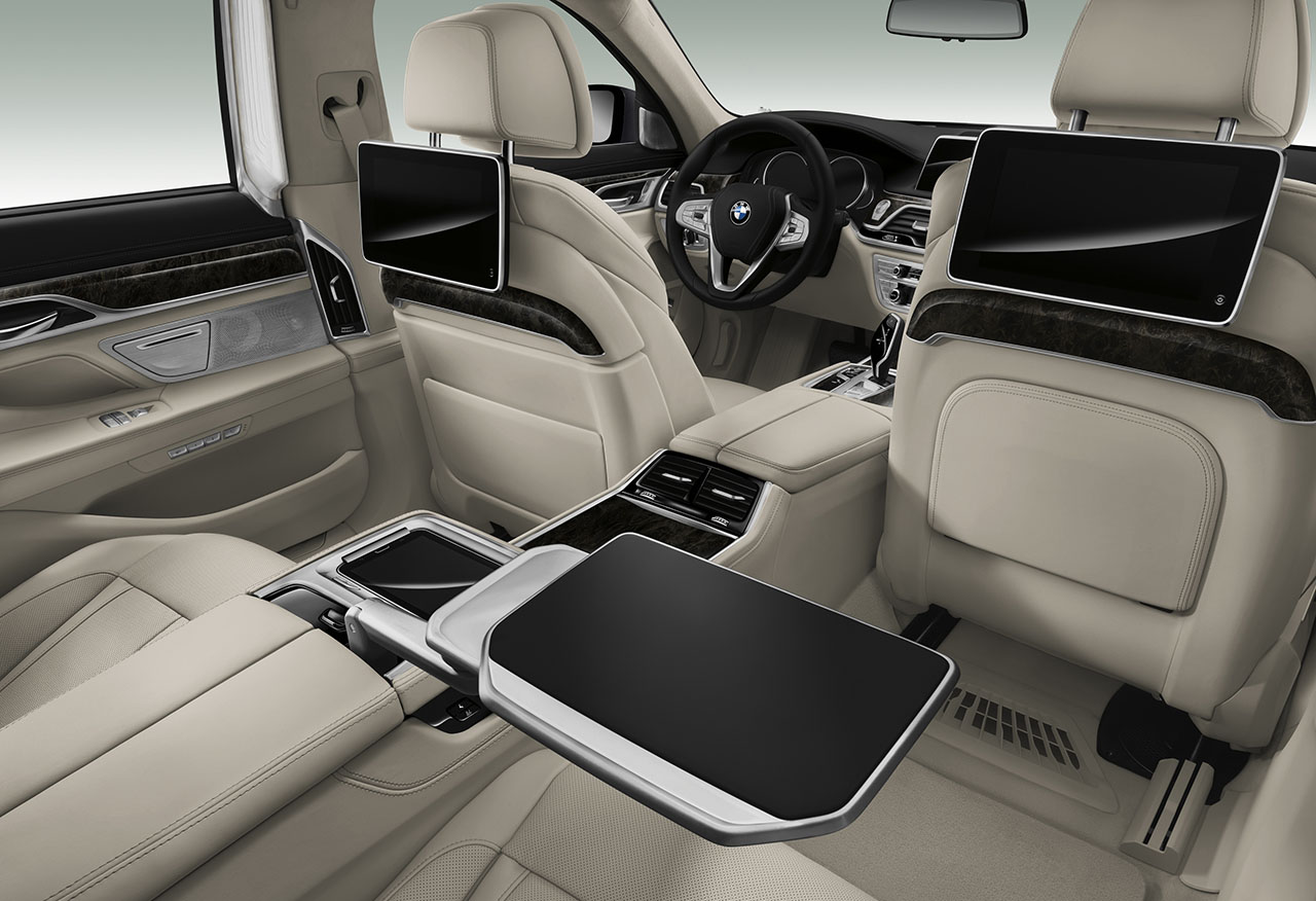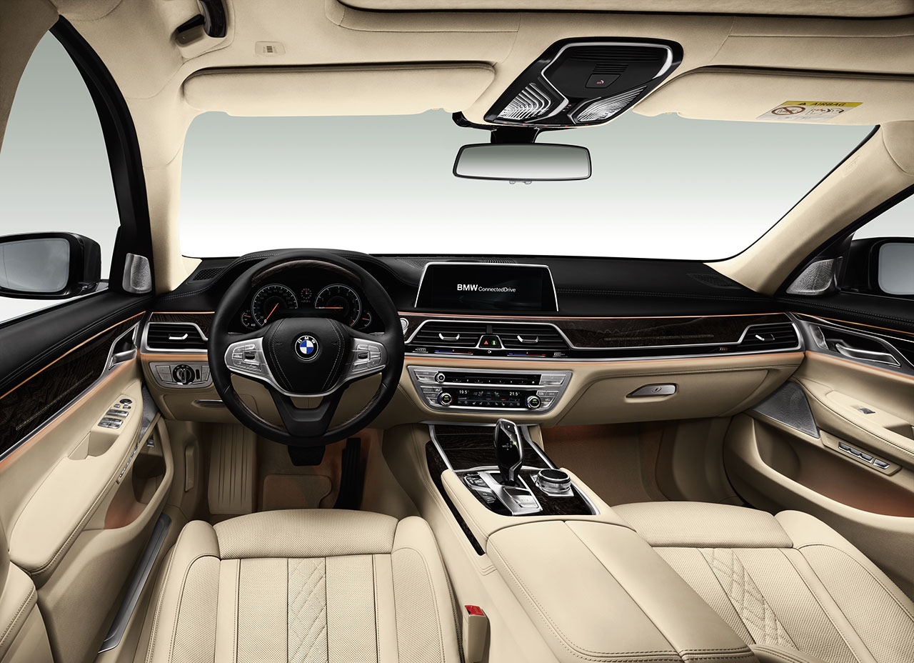 No interior destaca-se o novo sistema de infoentretenimento iDrive, que passa a dispor de um ecrã táctil, bem como de um sistema de comandos através de gestos, que detecta determinados movimentos das mãos para a realização de um conjunto de diversas funções. Existem ainda novos comandos sensíveis ao toque, como nos elementos de climatização, que tornam a experiência de utilização do novo Série 7 em algo único.