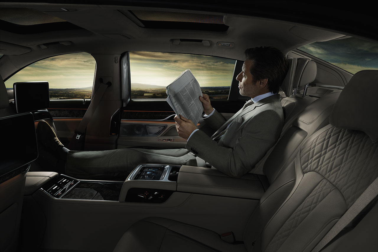 Porém, é na versão longa que a experiência se manifesta na totalidade, especialmente se optar pelo Pack Executive Lounge, onde é possível desfrutar de um incremento no espaço para os ocupantes traseiros, implementação de bancos traseiros individuais, que podem ser ventilados e realizar massagens. Na consola central dos lugares traseiros poderá receber uma mesa desdobrável, suporte para copos e um tablet de 7 polegadas para controlar todas as funções (climatização e entretenimento) do sistema de infoentretenimento, que pode ser visualizaro através dos ecrãs colocados atrás dos encosto de cabeça dos bancos dianteiros.