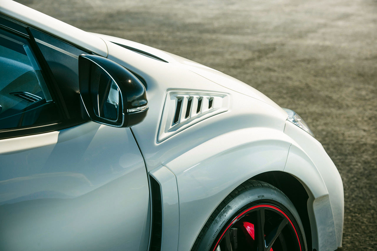 A dimensão da furação na grelha do pára-choques foi estudada para permitir um arrefecimento mais eficaz do intercooler do motor, sem implicar uma perda muito elevada em termos aerodinâmicos. Esta é, pelo menos, a explicação dada pelos responsáveis da marca sobre a utilização da enorme asa traseira que, embora dê demasiado nas vistas, tem efectivamente um efeito aerodinâmico muito importante.
