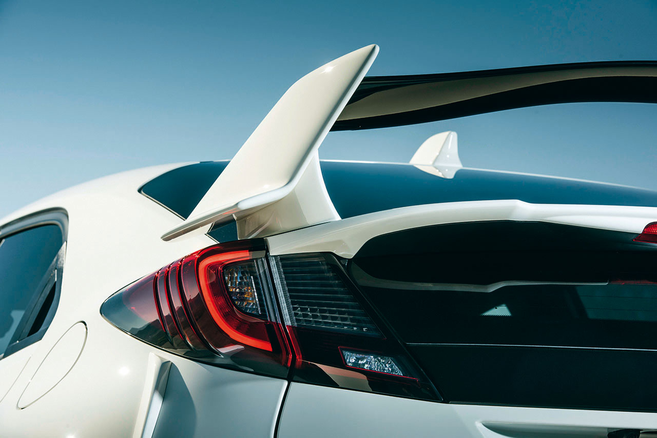 Começando pela aerodinâmica, o novo Type R foi inspirado no Civic WTCC de competição, daí utilizar soluções únicas, como o fundo (quase) totalmente plano para reduzir o atrito do ar e criar um efeito de “sucção” ao asfalto, daí que em conjunto com outros apoios aerodinâmicos, o Type R consiga um nível zero de elevação a altas velocidades e um mínimo de coeficiente de arrasto que o tornam único no segmento.