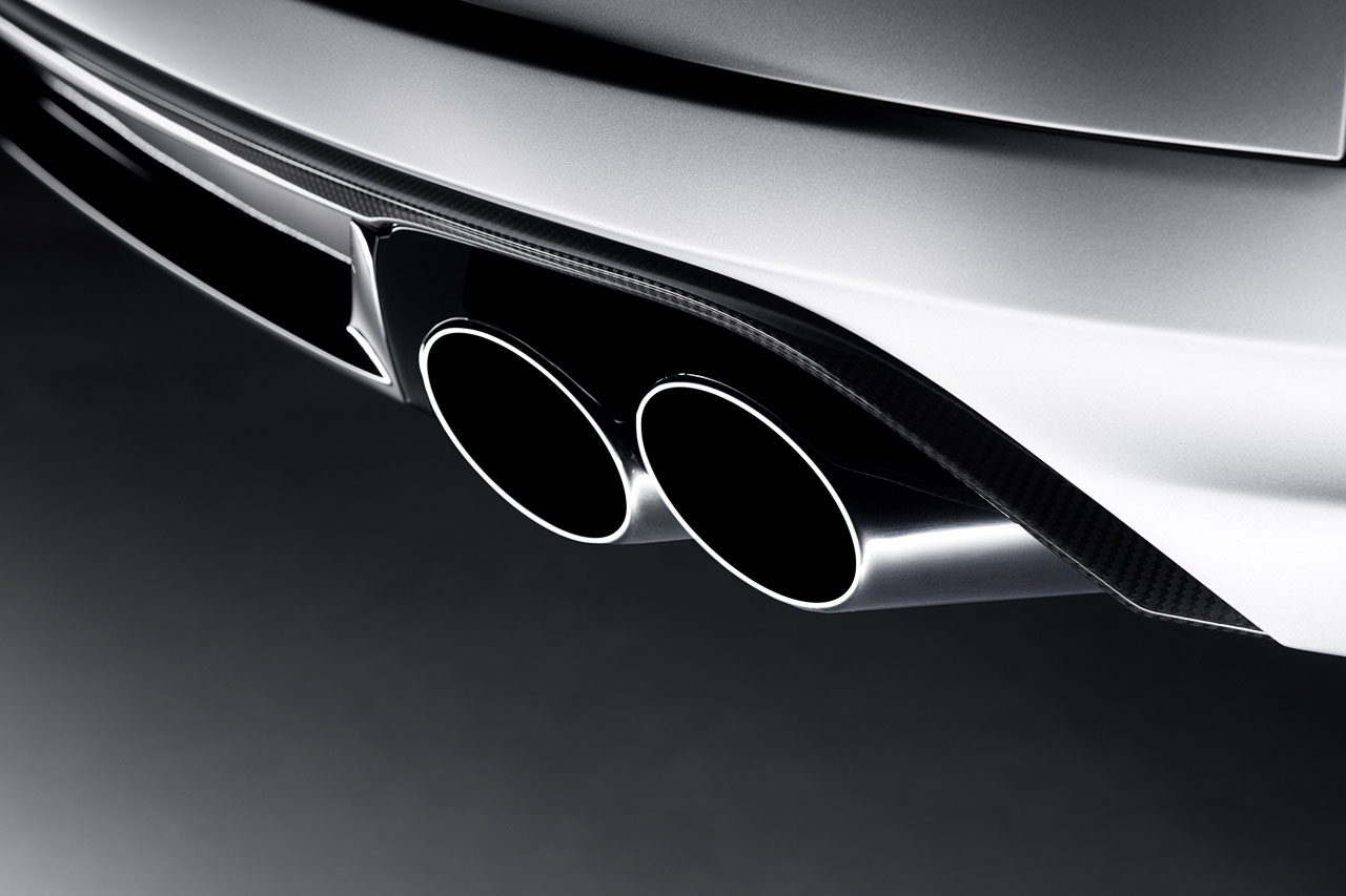 exclusivas, pela utilização de diversos elementos em fibra de carbono, como no difusor traseiro (onde ficam alojadas as quatro saídas de escape escurecidas), no spoiler traseiro colocado na tampa da bagageira, nas capas dos espelhos retrovisores e no friso das luzes de nevoeiro. A grelha SingleFrame recebe um acabamento em preto, tal como na moldura dos vidros das portas.