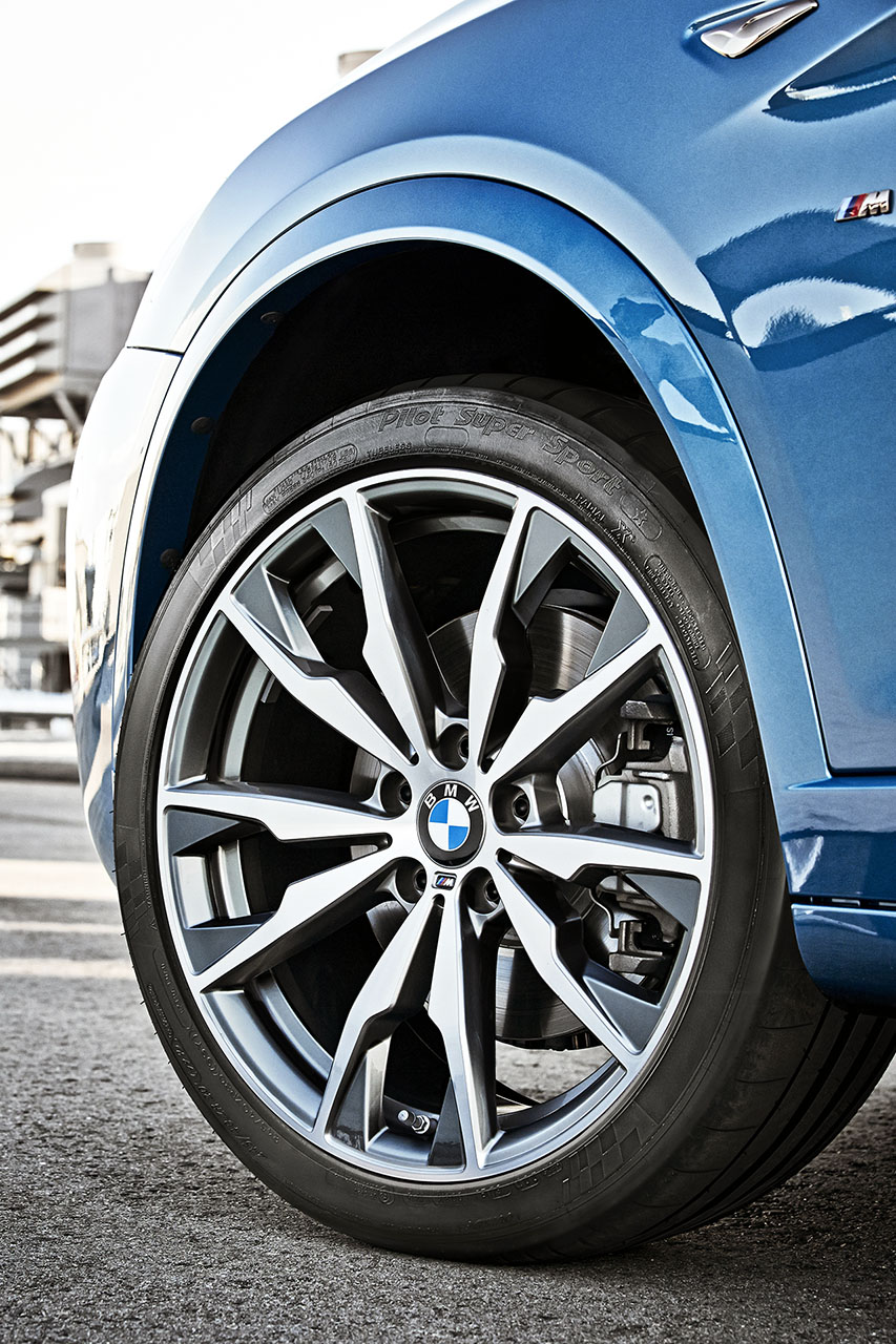 As jantes de 20 polegadas, de desenho M de raios duplos com dois tons estão equipadas com pneus de alto desempenho Michelin Pilot Super Sport, e o sistema de escape desportivo (com sistema de controlo de sonoridade) com a dupla saída reforçam a imagem e o comportamento desportivo deste modelo. No interior, destaca-se o volante M em couro com patilhas para a caixa, e punho da caixa M, também em couro.