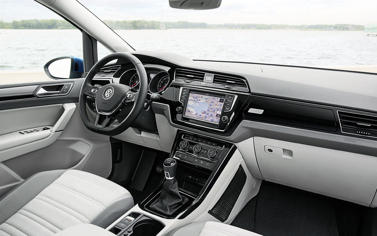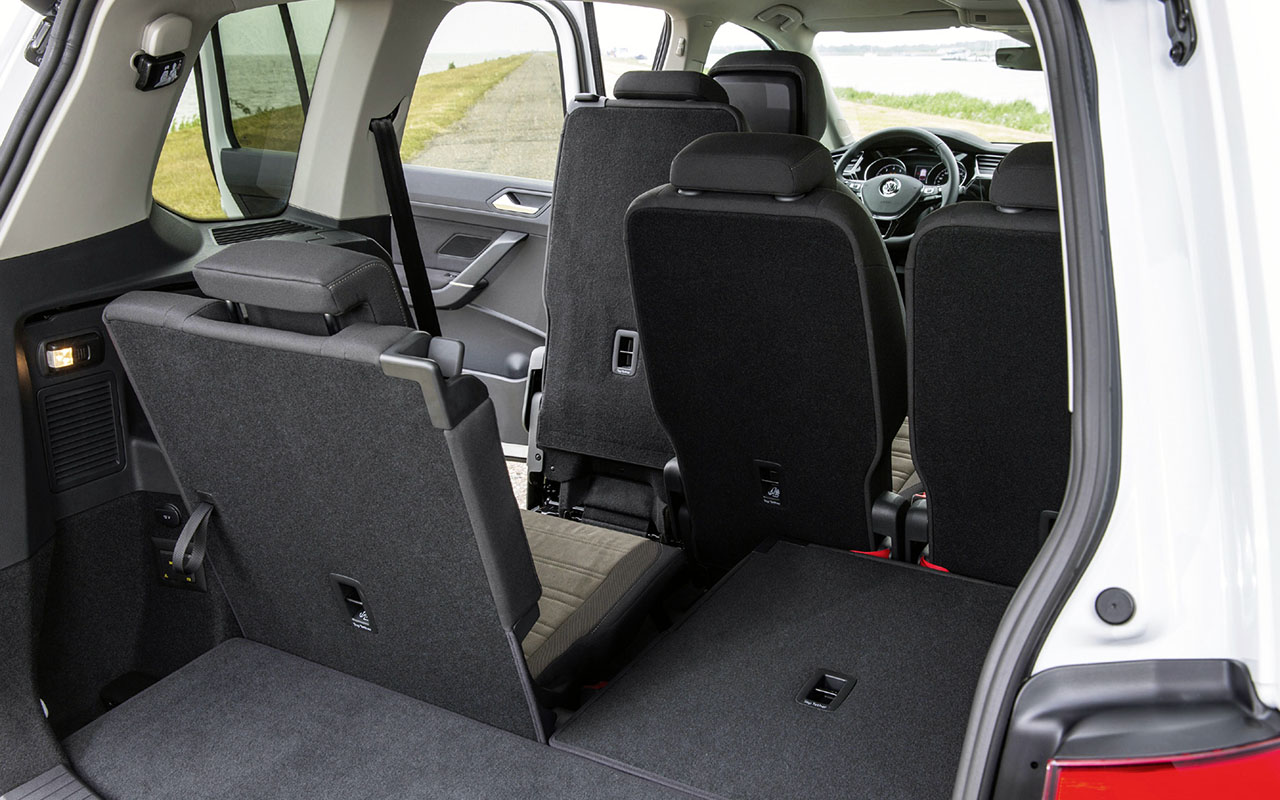 Disponível apenas na variante de sete lugares, este monovolume mantém a sua elevada versatilidade anterior, existindoa gora um sistema plano para os bancos ainda mais fácil de manobrar. Com mais 130 mm de comprimento que a anterior geração, mas 62 kg mais leve, o novo Touran destaca-se pelos equipamentos disponíveis, como o sistema de ar condicionado Climatronic com 3 zonas e filtro antialérgico, com comandos na segunda fila de bancos para as versões Confortline e Highline.