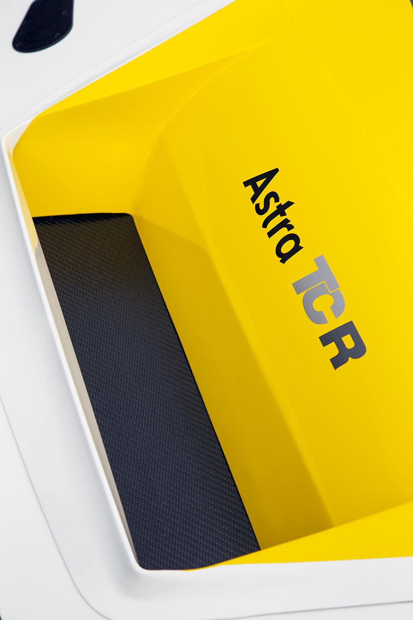 O peso do Astra TCR é de 1200 kg. A suspensão é totalmente regulável e recorre a amortecedores da mais recente tecnologia. A aerodinâmica comporta um difusor dianteiro e um ‘aileron’ traseiro, ambos reguláveis. Por razões de controlo de custos, o regulamento do TCR Series estipula que estes componentes são idênticos em todos os veículos participantes. Registe-se que sistemas electrónicos de apoio à condução, como o ABS ou o ESP, não são autorizados.
