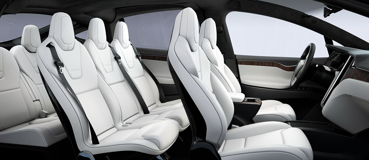 Equipado com o maior para-brisas da actualidade, que proporciona uma visibilidade “panorâmica”, o interior dispõe de espaço para várias configurações, como seis ou sete lugares (em formato 2+3+2 ou 2+2+2), com bancos independentes, e aos quais a terceira fila poderá ser totalmente rebatida. Na frente, destaque para o já conhecido painel táctil de 17 polegadas na consola central, tal como acontece na berlina Model S.
