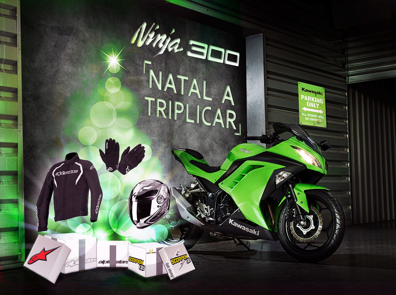A Multimoto Motor Portugal S.A., importador nacional da marca Kawasaki em Portugal, anunciou a introdução de uma campanha de Natal, em vigor em todos os concessionários oficiais Kawasaki, intitulada de “NATAL A TRIPLICAR”. Esta campanha, que abrange as Kawasaki Ninja 300 e Ninja 300 “Edição 30 Anos” (Edições Performance não incluídas), com e sem ABS, a Kawasaki Portugal oferece equipamento no valor de 502,93 euros.