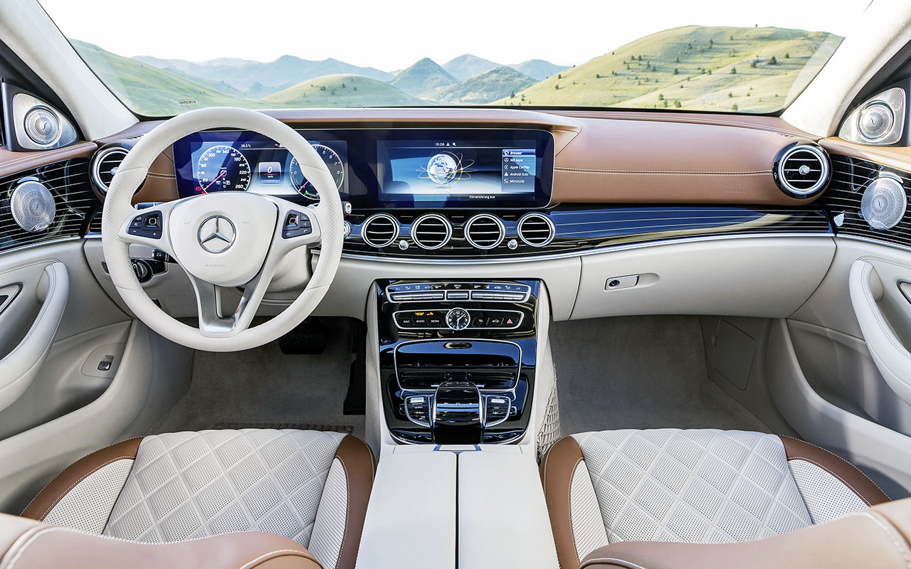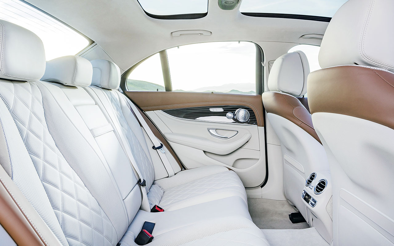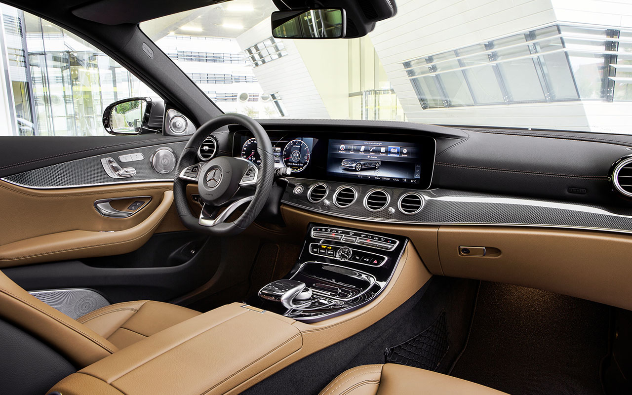 Em termos de revestimentos, o novo Classe E recebe uma nova escolha de materiais e cores, com várias tonalidades de castanho, incluindo novas combinações de cores atractivas tais como castanho o Castanho Nogueira / Macchiato e Castanho Saddle / Macchiato. Estão igualmente disponíveis diferentes tipos de madeiras, algumas porosas e com visual semelhante ao utilizado em iates, com linhas fluídas.