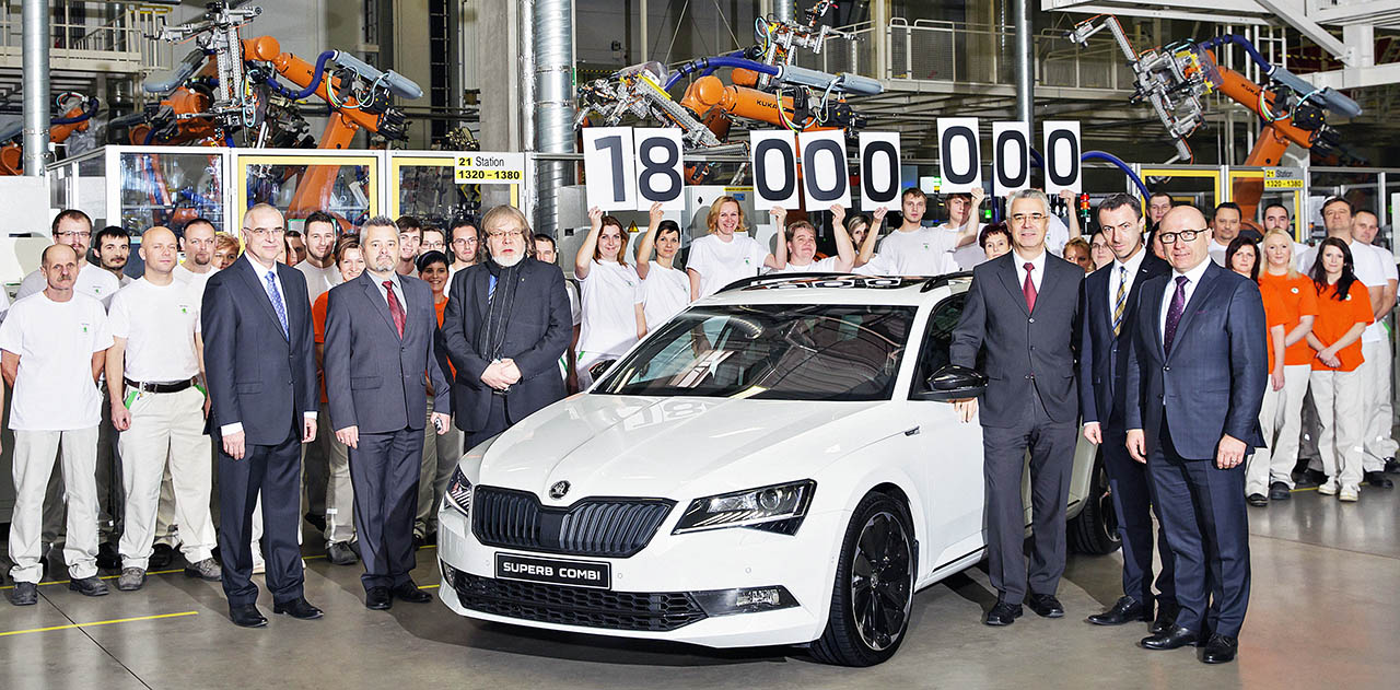 Com 110 anos de história, a Skoda atingiu a produção da sua viatura número 18 milhões, uma carrinha Skoda Superb em branco, na sua fábrica em Kvasiny, na Républica Checa. Bernhard Maier, CEO do grupo Skoda, Michael Oeljeklaus, membro da direcção para produção e Jaroslav Povšík, director do sindicato KOVO, estiveram presentes na altura do final de produção deste modelo.