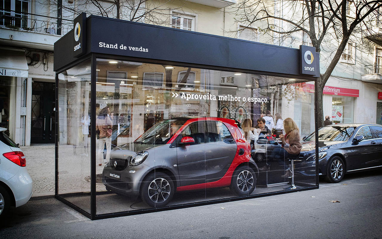 A imaginação da Smart em Portugal não conhece limites, razão pelo qual, após a brilhante campanha #smarteffect, decidiram criar, durante três dias, o stand mais pequeno do Muno em diversos bairros de Lisboa. Para tal foi usado um lugar de estacionamento real, demonstrando assim, uma vez mais, que tem a viatura ideal para a cidade, com a vantagem de estacionar nos bairros mais condicionados e congestionados da capital.