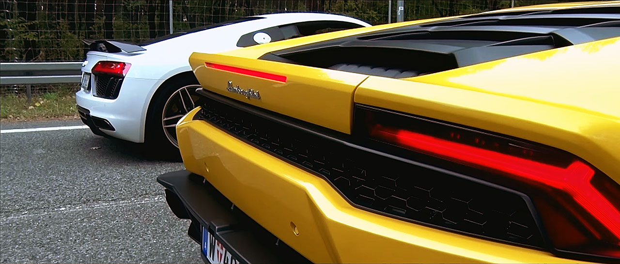 A equipa da Top Gear Polaca (sim, existe Top Gear na Polónia) decidiu realizar um vídeo que coloca em confronto dois modelo “meio-irmãos”, o Audi R8 V10 e o Lamborghini Huracán. Além de pertencerem ao mesmo grupo (Grupo Volkswagen), ambos partilham a mesma plataforma MSS (Modern Sport System) e o motor, um 5.2 V10 atmosférico de 610cv.