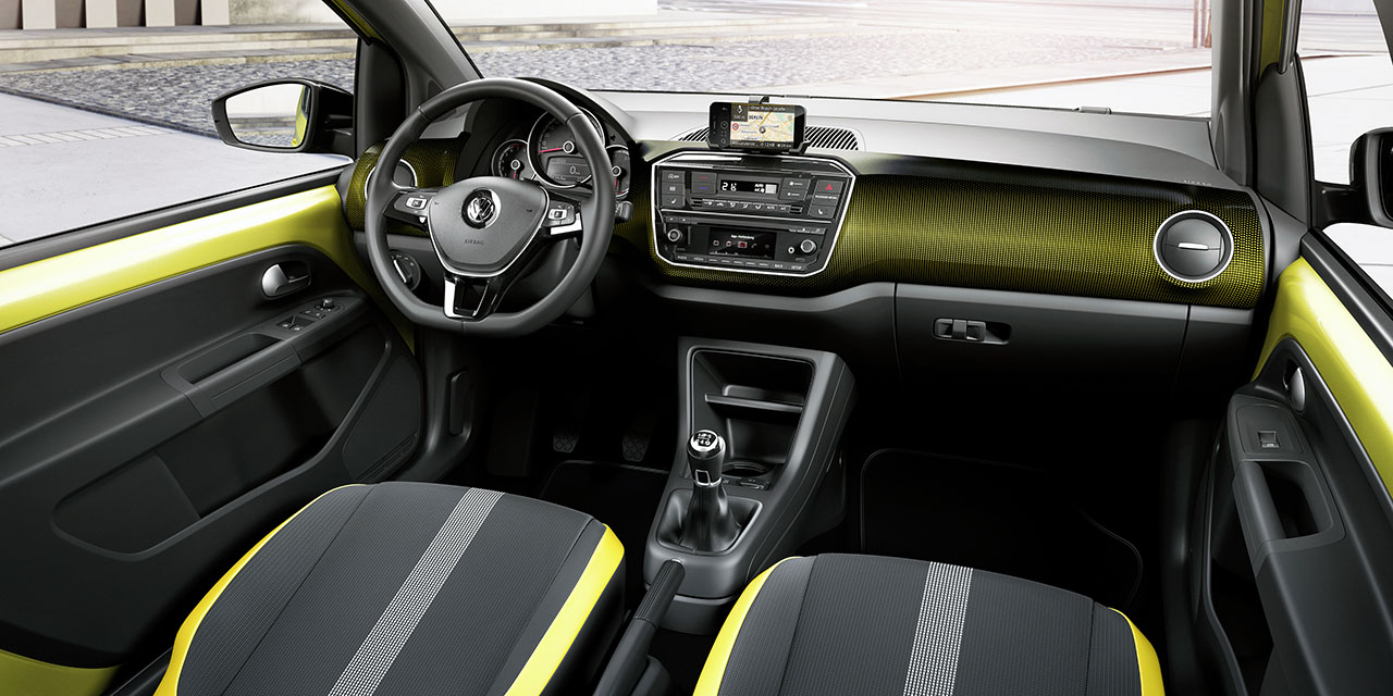 Debaixo do capot destaca-se a nova motorização, o 1.0 TSI, turbo de três cilindros a gasolina com 90cv de potência e 160Nm de binário máximo, logo às 1500rpm, que permitirá, com caixa manual, percorrer até 800km com um só depósito, graças à média de consumo de apenas 4,4l/100km, o que corresponde a 102g/km de emissões de CO2. Apesar de “poupadinho”, este motor tem a particularidade de permitir ao pequeno Up! atingir os 100km/h em apenas 10s, e de atingir os 185km/h de velocidade máxima.