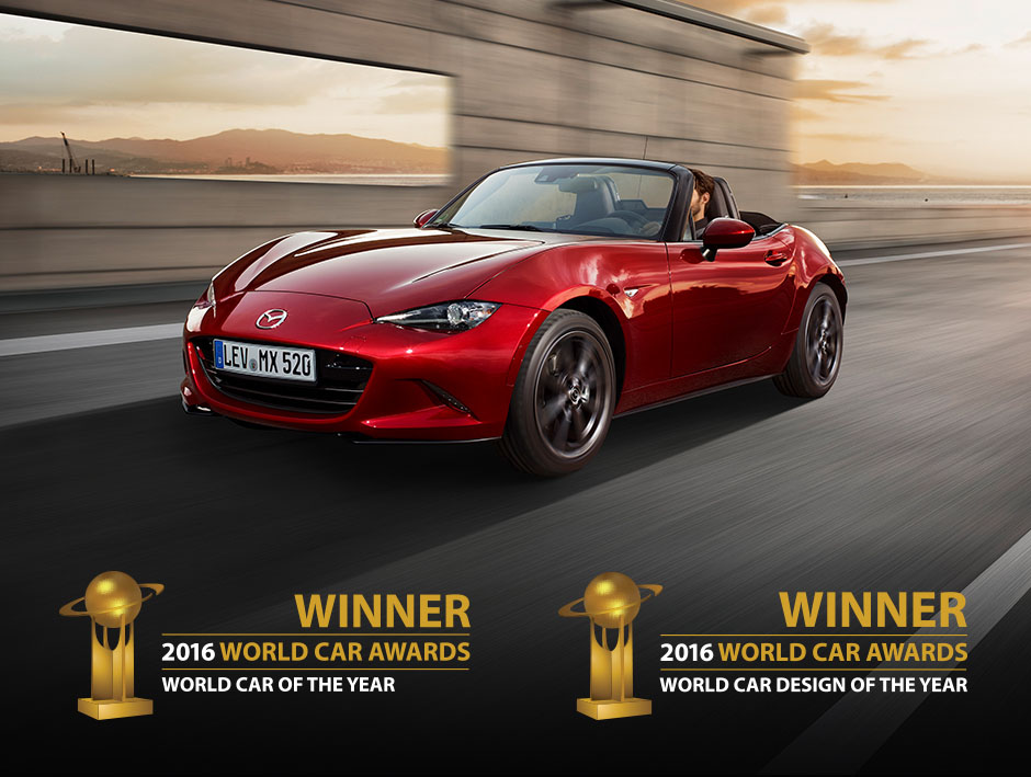 Revelado durante o Salão Automóvel de Nova Iorque, a quarta geração do roadster nipónico acaba de conquistar mais um importante galardão, o de Carro do Ano Mundial 2016 (World Car of The Year). Com esta vitória, a Mazda consegue assim a sua segunda conquista na prova, tendo o Mazda 2 conquistado o mesmo galardão em 2008.