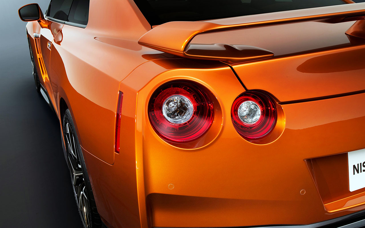 O formato esguio já familiar do GT-R define o seu perfil, mas as zonas após as rodas dianteiras foram aumentadas para melhorar o fluxo de ar. A traseira do super desportivo da Nissan também foi objecto de uma transformação completa, com a introdução de ventiladores laterais junto às quatro saídas de escape. Apesar das alterações, o GT-R mantém alguns elementos que actuam como imagem de marca, como os quatro conjuntos ópticos redondos, sendo o resultado final o de uma traseira com um aspecto mais desportivo, bem como mais eficiente, aerodinamicamente.
