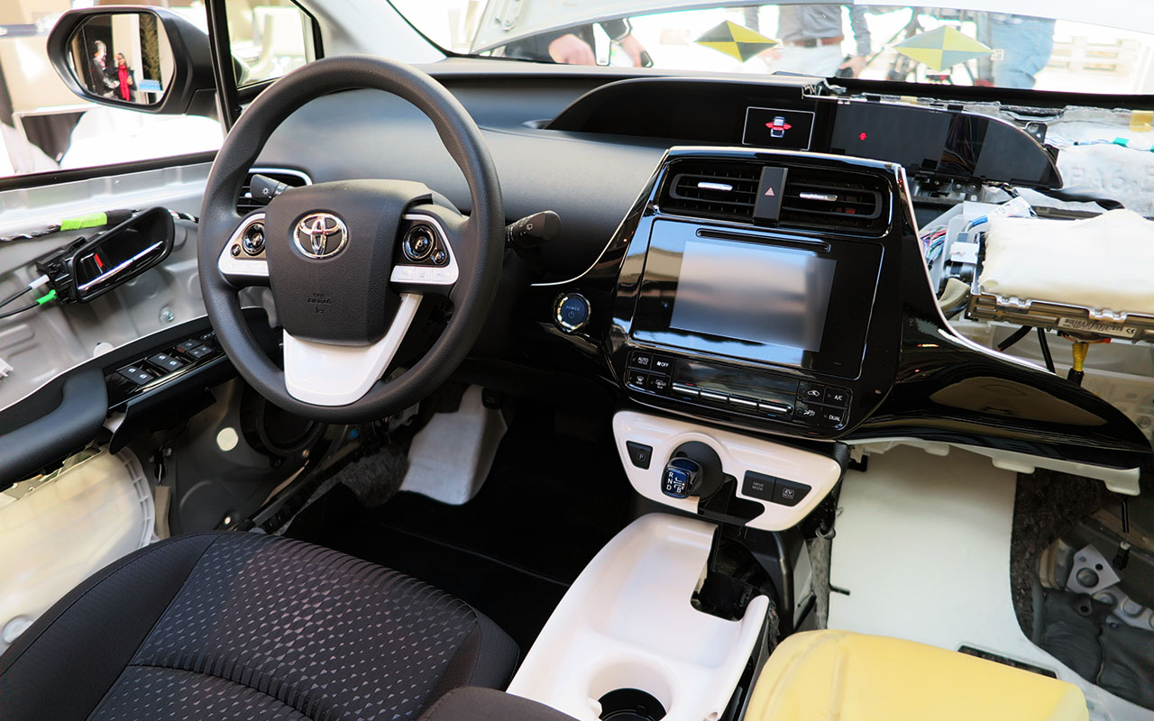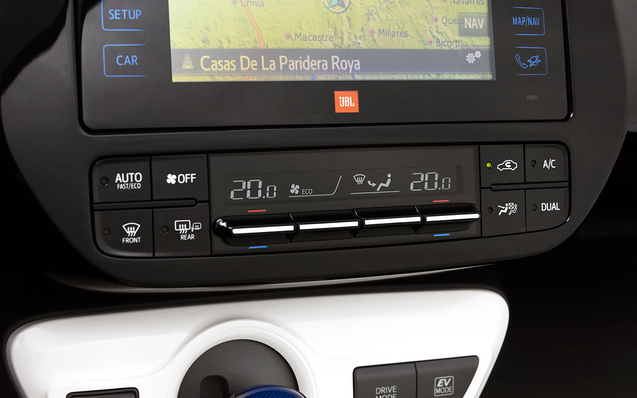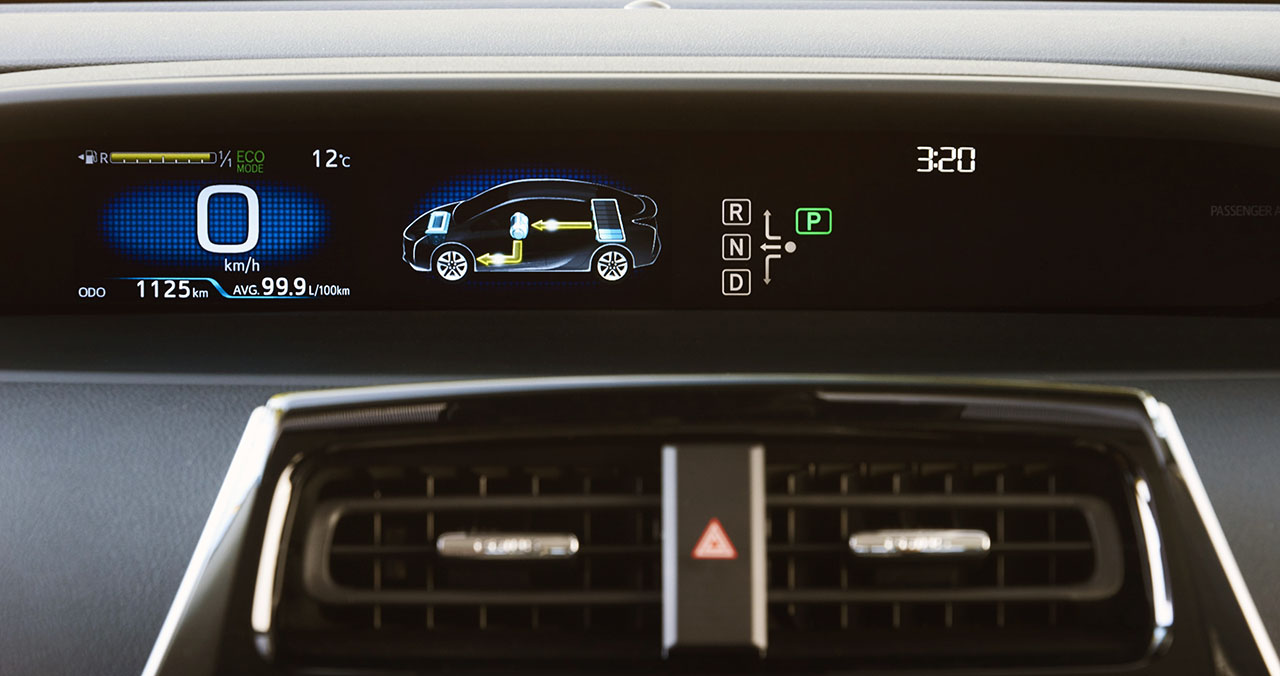 Falta falarmos no interior e nas tecnologias utilizadas, com o novo Prius a aplicar o novo sistema de infoentretenimento já utilizado no Auris, bem como o sistema de climatização abaixo do mesmo, e o sistema dos botões de modos de condução em conjunto com a invulgar manete de velocidades. No topo continua a predominar o ecrã de 4.2 polegadas que serve de painel de instrumentos, e o head-up display colorido que projecta no párabrisas as principais informações para não precisar de desviar o olhar da estrada.