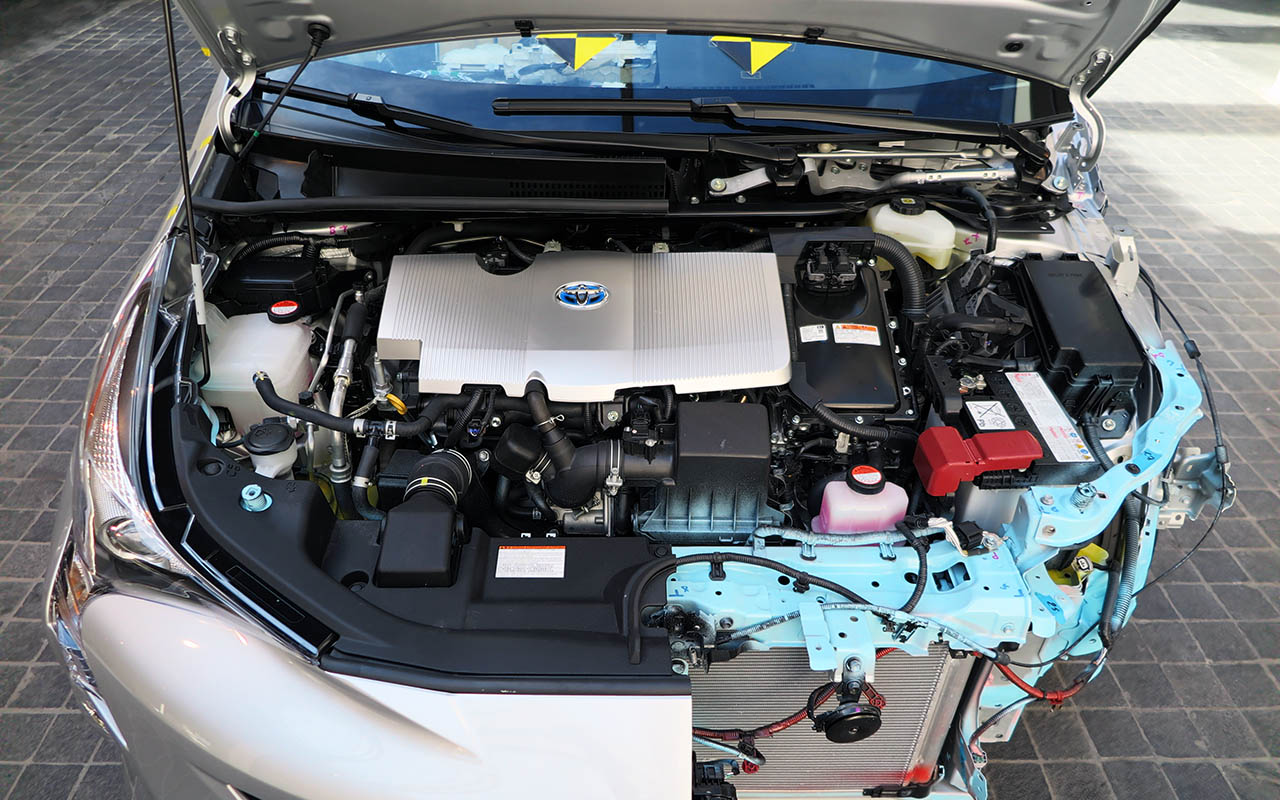 Em termos de motorização, o novo Prius mantém a utilização de um motor de quatro cilindros 1.8 a gasolina atmosférico com ciclo Atkinson, embora este tenha recebido agora dois motores eléctricos, garantindo uma potência total combinada de 122cv. Este motor, que recebeu inúmeras alterações para ser ainda mais eficiente (a Toyota garante uma impressionante eficiência térmica de 40%), em conjunto com a renovada caixa CVT (que viu reduzidas em 20% as perdas de potência), garantem um comportamento significativamente melhor, uma vez que a actuação dos motores eléctricos permitem compensar os momentos de maior aflição para o motor de combustão, especialmente quando usado o modo “Power”.
