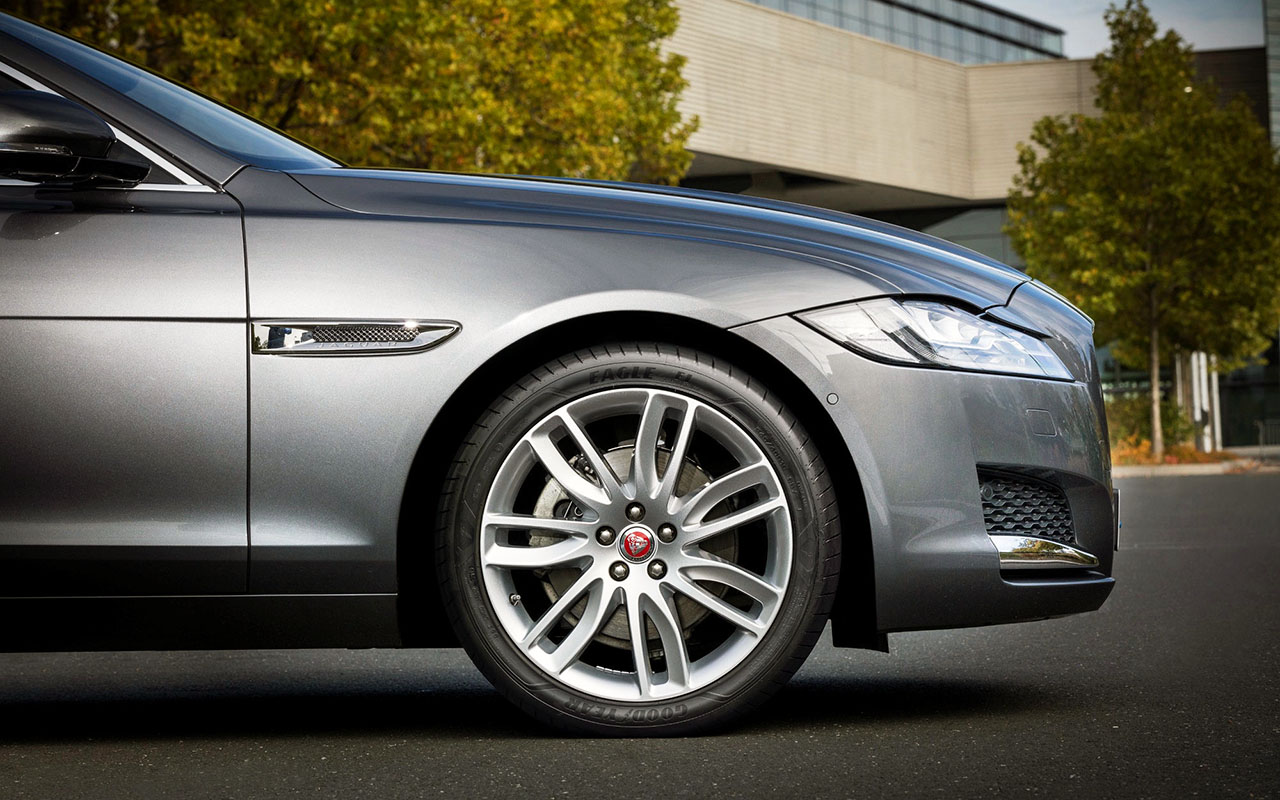 Com esta atribuição, o Jaguar XF torna-se num dos primeiros veículos na Europa a serem dotados com o novíssimo pneu UHP da Goodyear como equipamento de origem e com o desenvolvimento do mesmo e do veículo a decorrerem em simultâneo, entre a Goodyear e a Jaguar. O Jaguar XF será equipado com pneus dos tamanhos 225/55R17 101Y XL, 245/45R18 100Y XL, 245/40R19 98Y XL e 255/35R20 97Y XL