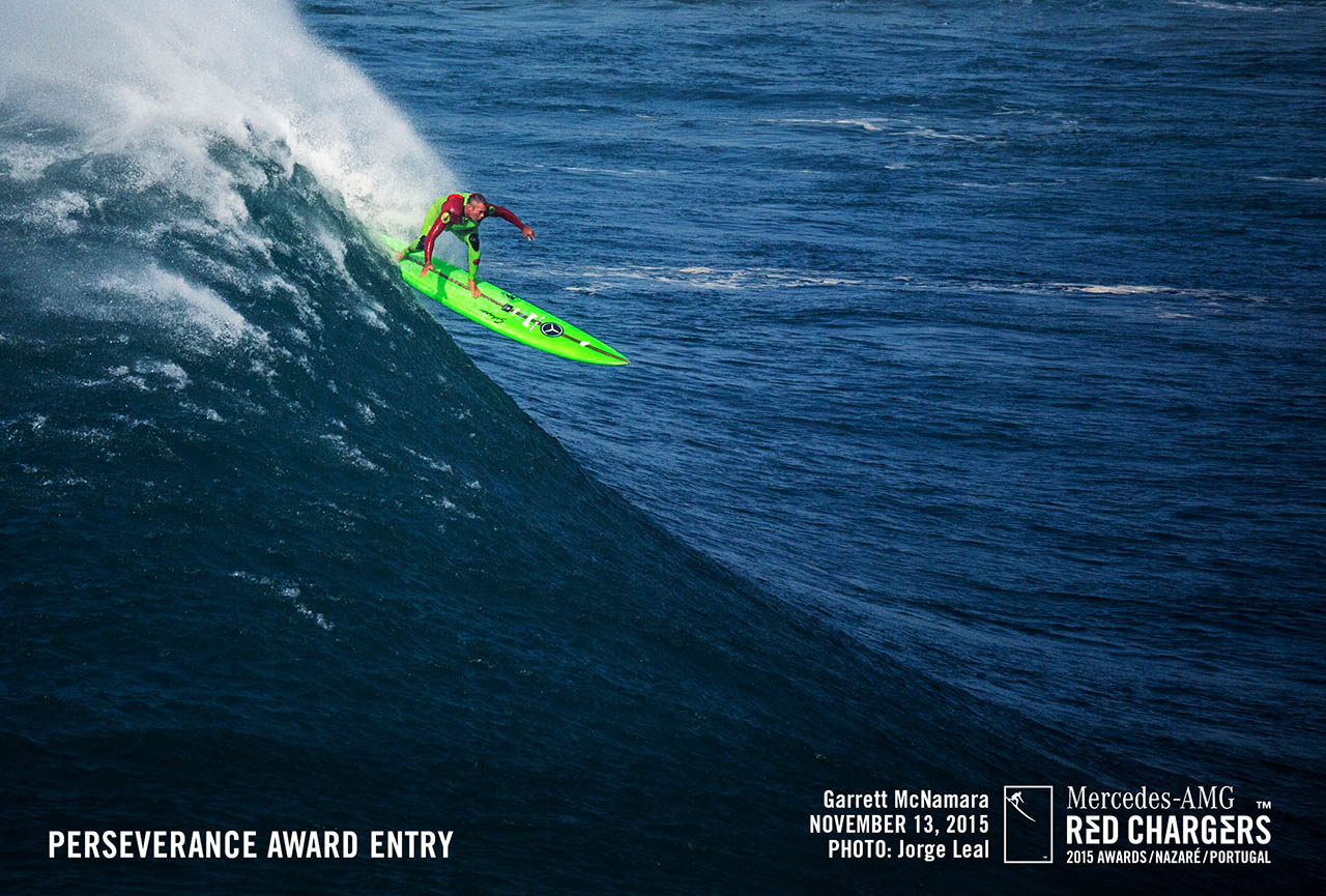 A parceria com o Garrett McNamara e com a Câmara da Nazaré e Nazaré Qualifica, ilustra a evolução da Marca em Portugal, através de uma atividade de proximidade com as pessoas e geradora de notícias sobre Portugal no mundo. No evento final para a entrega dos prémios aos atletas, a realizar em Outubro, será apresentado o documentário com os melhores momentos do Mercedes-AMG Red Chargers, o qual será posteriormente transmitido na RTP e na Fuel TV Internacional. O filme irá destacar as emocionantes e inspiradoras histórias dos atletas que participaram no Mercedes-AMG Red Chargers e também os salvamentos, wipeouts e as ondas monstruosas da Nazaré.