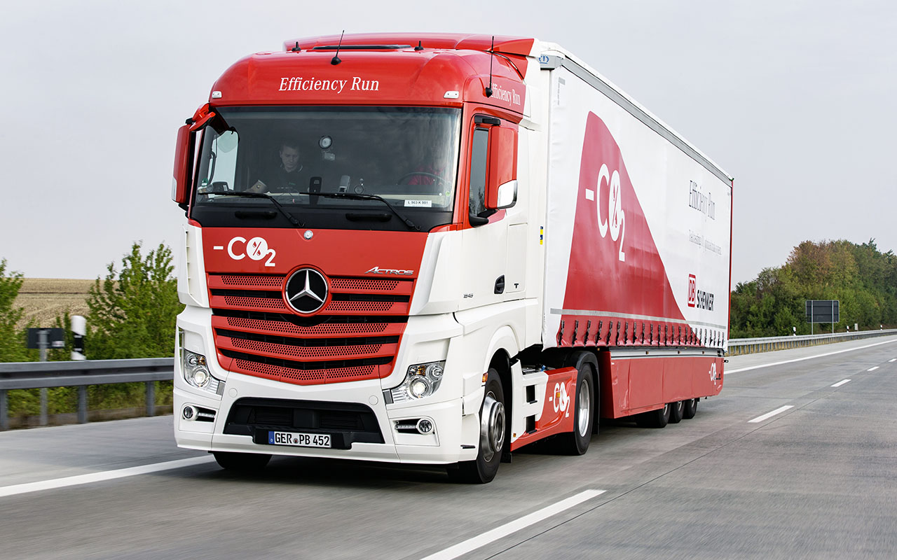 O teste procurou ainda utilizar equipamento disponível no mercado, como os pneus de camião Goodyear FUELMAX eficientes no consumo de combustível, para mostrar o que se pode obter nos dias de hoje. As empresas de transporte DB Schenker Logistics e Grosse-Vehne participaram nos testes com combinações de semirreboque normais equipadas com pneus de camião Goodyear FUELMAX. As unidades usadas foram os Mercedes-Benz Actros 1842 e Actros 1845, optimizadas apenas com componentes actualmente disponíveis no mercado e equipadas com o sistema Predictive Powertrain Control (PPC).