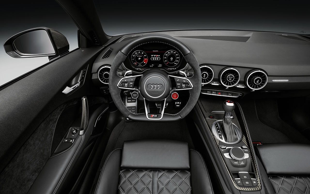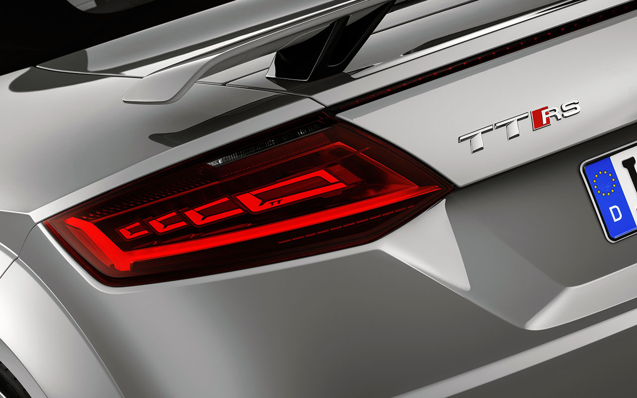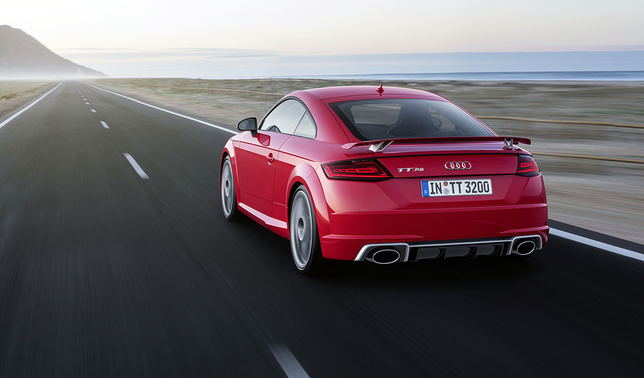 Esta motorização estará associadao, em exclusivo, com a transmissão de dupla embraiagem de sete velocidades S Tronic e com o sistema de tracção integral Quattro. Além do elevado desempenho, os novos Audi TT RS destacam-se pelo visual mais arrojado, graças à aplicação de um redesenhado pára-choques com entradas de ar personalizadas, pela integração de um aileron fixo e um difusor com a dupla saída de escape cromada. Na secção traseira, destaque para os novos farolins com recurso à tecnologia OLED, tornando-se assim no primeiro modelo da marca a usar esta tecnologia.