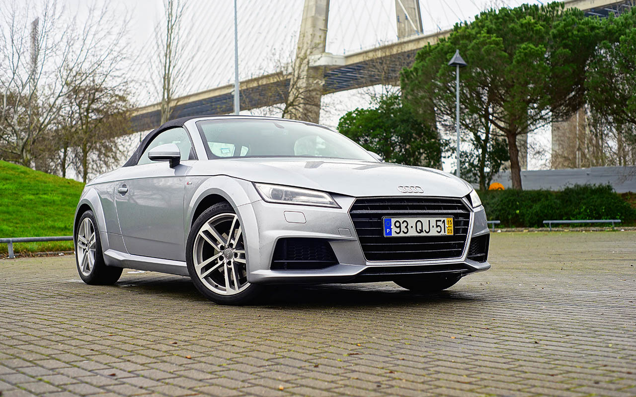 Visualmente o novo TT mantém características do modelo original, como o efeito da bolha do habitáculo a sobressair das linhas da carroçaria, e a reintegração de elementos visuais exclusivos, como a tampa do depósito de combustível em alumínio com a designação do modelo, ou os aros metálicos de protecção colocados atrás dos encostos de cabeça. Claro que existem novidades, como as luzes traseiras em LED de série, e faróis dianteiros que podem ser em LED (1120 euros) ou LED Matrix (2210 euros), permitindo desta forma que circule sempre com os máximos ligados, uma vez que o sistema cria sombras para evitar encadear os restantes automobilistas a circular na estrada.