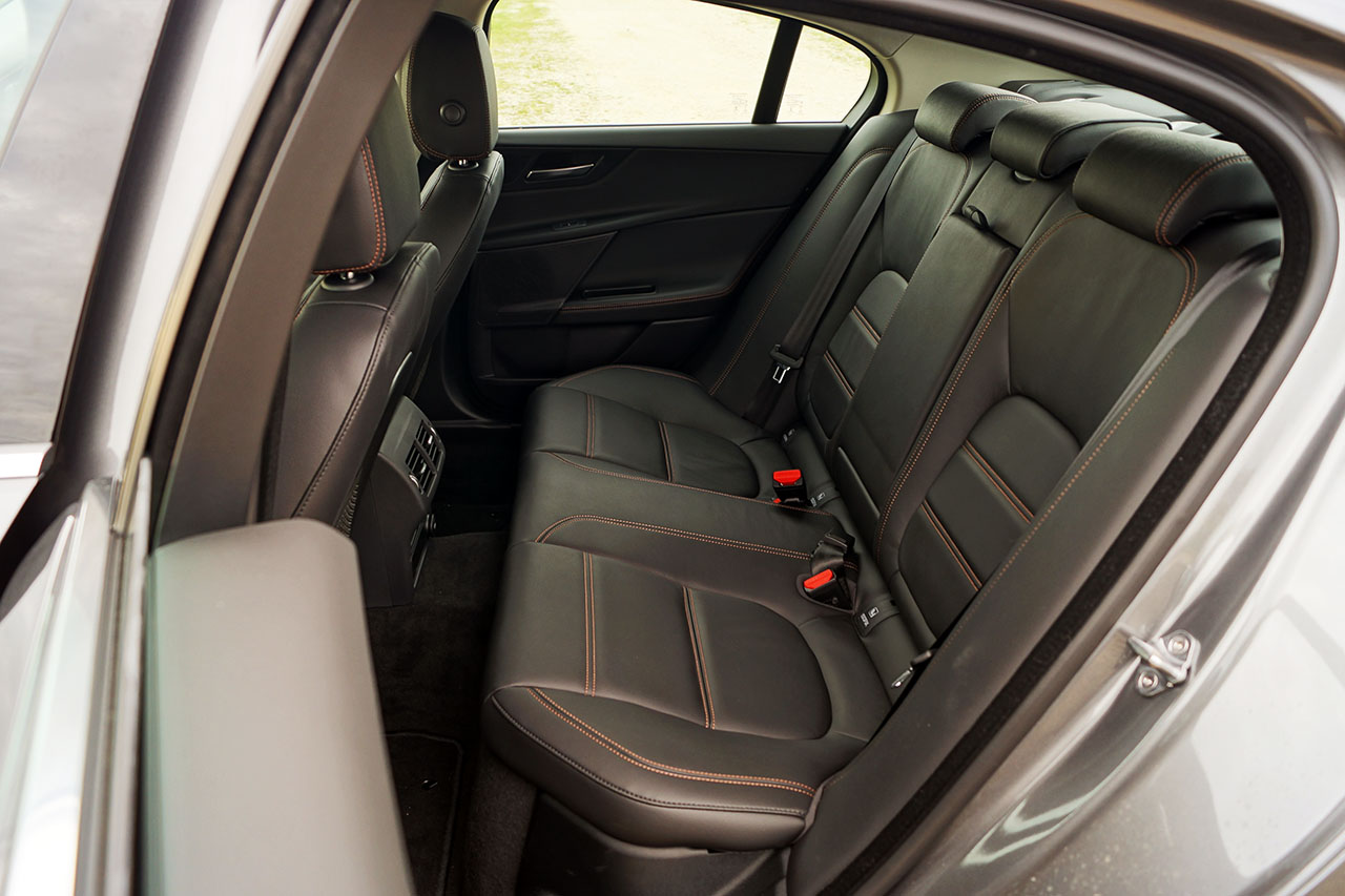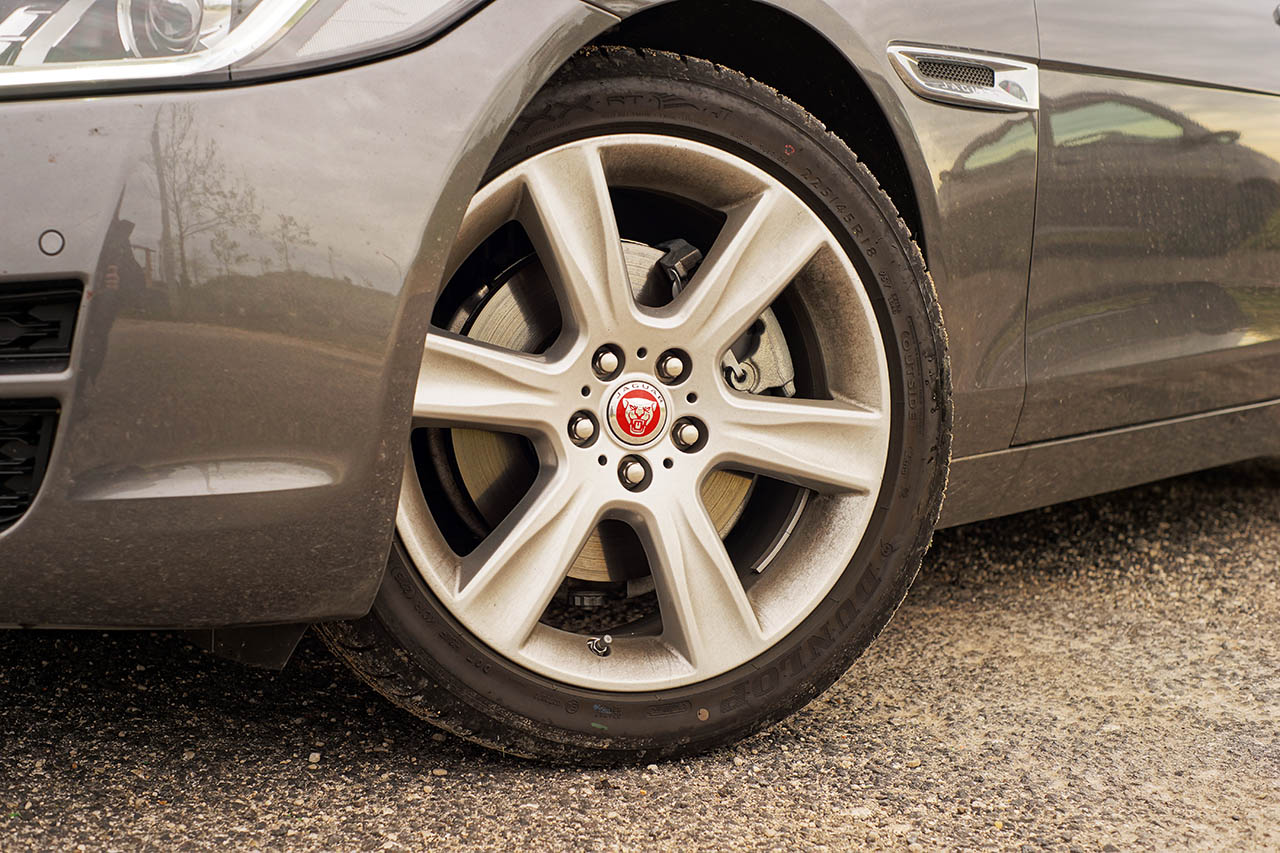 Esta solução, mesmo usando amortecedores mecânicos tradicionais, como foi o caso deste modelo do parque de imprensa, revelou um comportamento excepcional, tanto em termos de conforto como de dinâmica, algo que ainda deverá ser melhor se optar pela suspensão adaptativa. Tal como a suspensão, o Jaguar XE estreia (juntamente com o F-Type com tracção às quatro rodas) uma nova direcção de actuação eléctrica, que apesar de em teoria oferecer um feedback algo artificial, esta revelou ser uma das mais comunicativas do mercado.