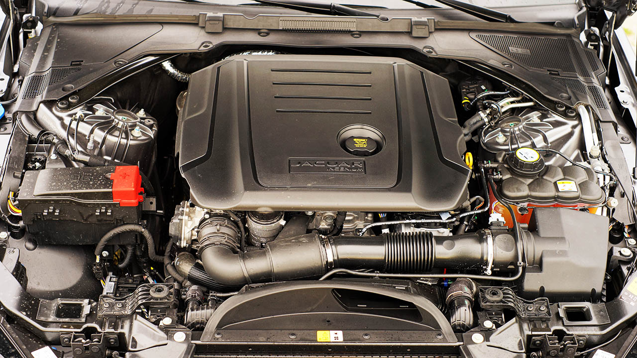 Falta apenas falarmos no ponto fulcral que levará a Jaguar ao sucesso (tem tudo para o ser), as novas motorizações de dois litros e quatro cilindros Ingenium. Esta versão em particular vinha equipada com o 2.0d Ingenium com 180cv, que associado à transmissão automática de oito velocidades, revelou uma disponibilidade impressionante, ao nível dos seus rivais. Apesar de usar uma caixa automática, esta poderá usar um modo desportivo ou um modo manual, no qual poderá usar as patilhas colocadas no volante.