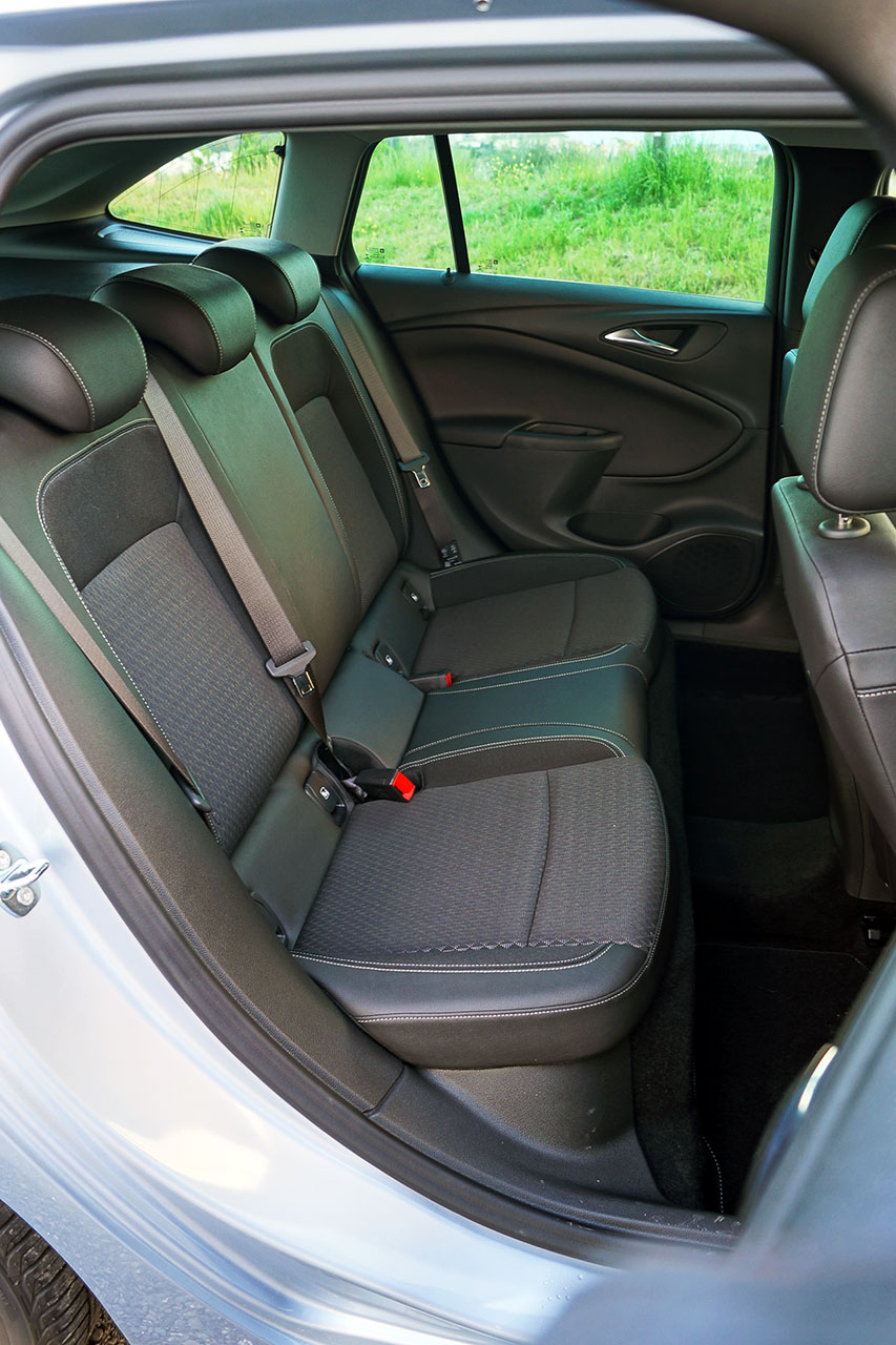 Voltando ao interior, este revelou ter mais espaço que as versões anteriores, como a altura, que aumentou tanto para os lugares à frente como atrás. Os novos bancos representam uma poupança de 10kg, o que ajudou à nova Astra Sports Tourer ser, no mínimo, 110kg mais leve que a versão equivalente da anterior geração, podendo esse valor chegar aos 190kg.
