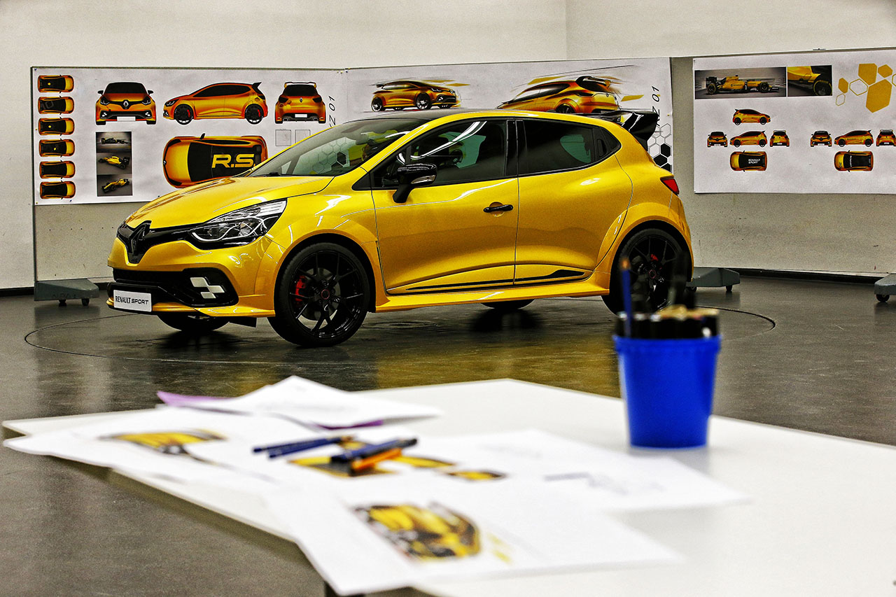 Para expressar no design todo o empenho técnico realizado neste modelo, o designer Franck Le Gall decidiu manter-se fiel à dinâmica do Clio R.S., reforçando apenas a sua expressividade. Além das já referidas jantes de 19 polegadas, que obrigou a um alargamento da carroçaria (recorrendo a extensões em material compósito nos guarda-lamas), este recebeu um novo difusor traseiro, aileron traseiro similar ao usado no Clio Cup.