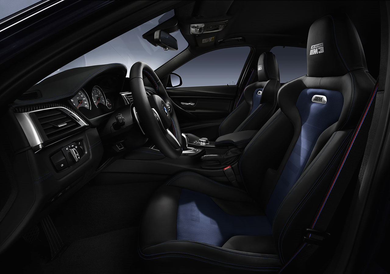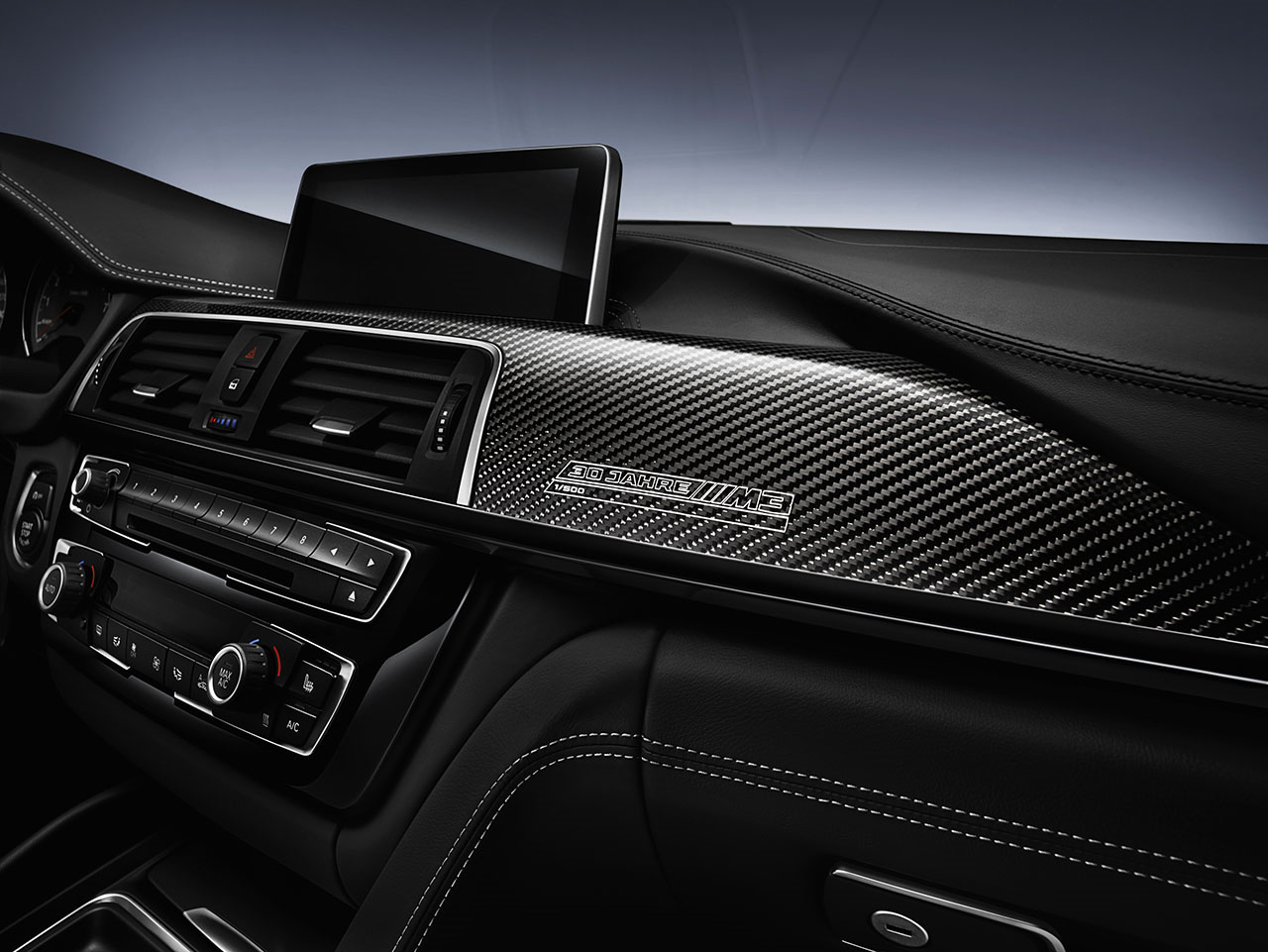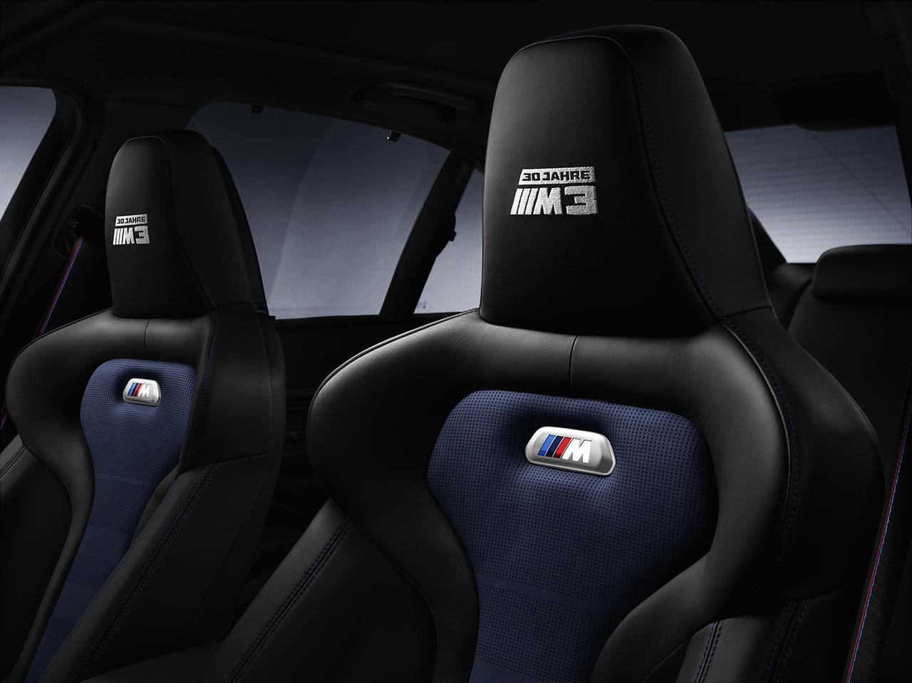 No interior, esta edição destaca-se pelo uso de bancos em pele bicolor em preto e azul, sendo possível optar pela combinação preto e cinzento com costuras contrastantes, bem como os óbvios logótipos da edição “30 Anos M3” nas costas dos bancos dianteiros, no tablier e nas soleiras das portas.