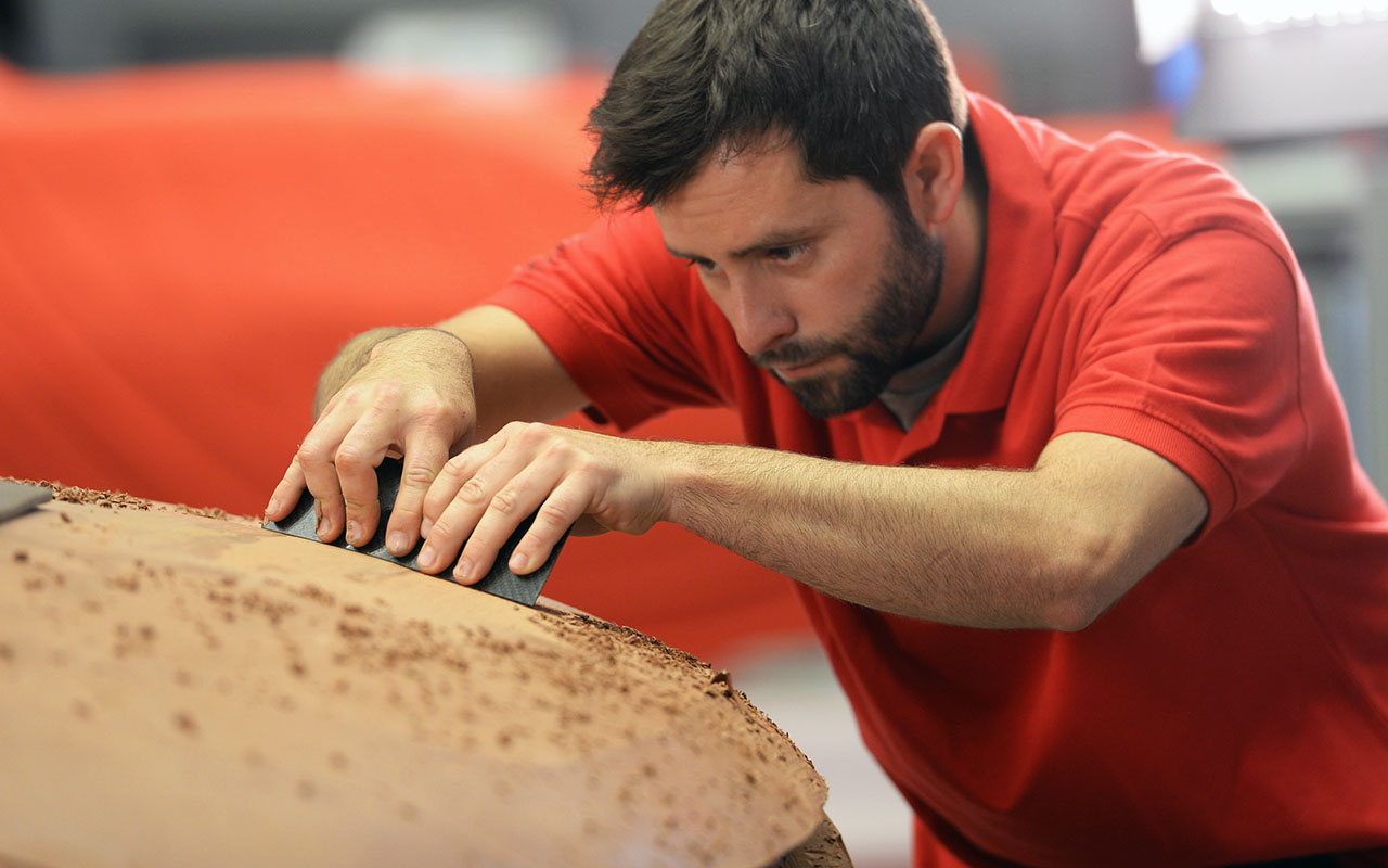 Este processo também envolve o trabalho manual de um artesão que vai moldando e polindo o modelo à mão.