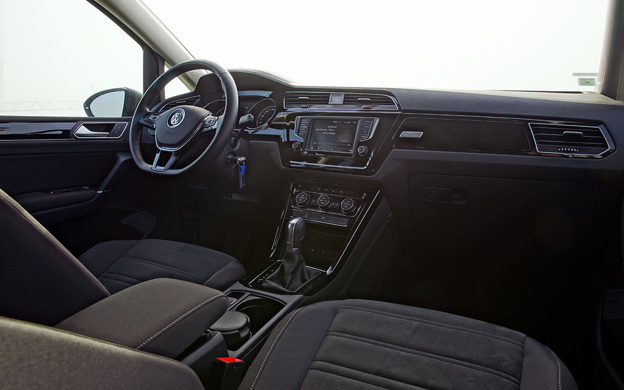 Ligeiramente mais curta e compacta que a Sharan (tem quase o mesmo comprimento que uma carrinha Golf), a Touran consegue, ainda assim, oferecer bastante espaço para os sete ocupantes, isto sem contar com as inúmeras soluções de arrumação ao longo do habitáculo. Ok, os lugares da terceira fila não são assim tão espaçosos, não sendo recomendável o uso a passageiros adultos, mas crianças viajam com espaço mais do que suficiente para as suas brincadeiras durante as viagens.