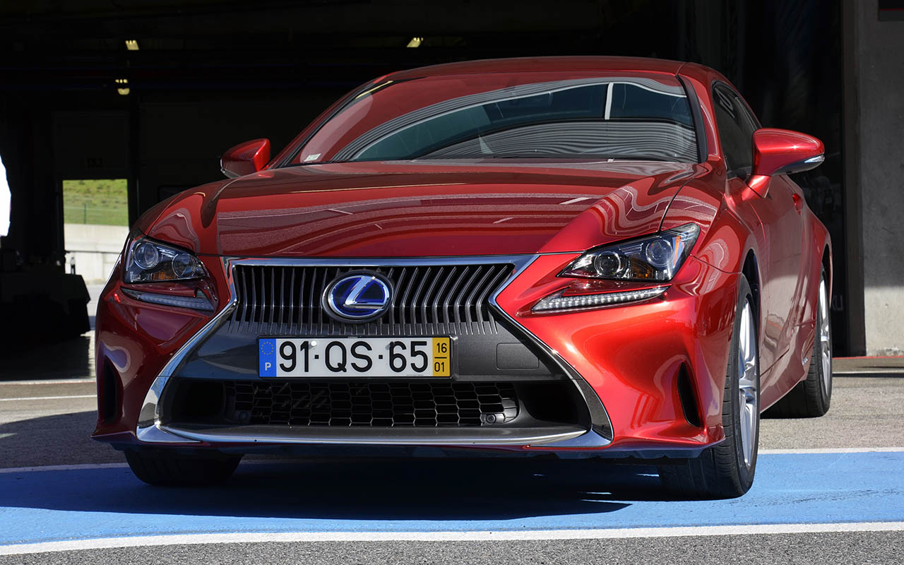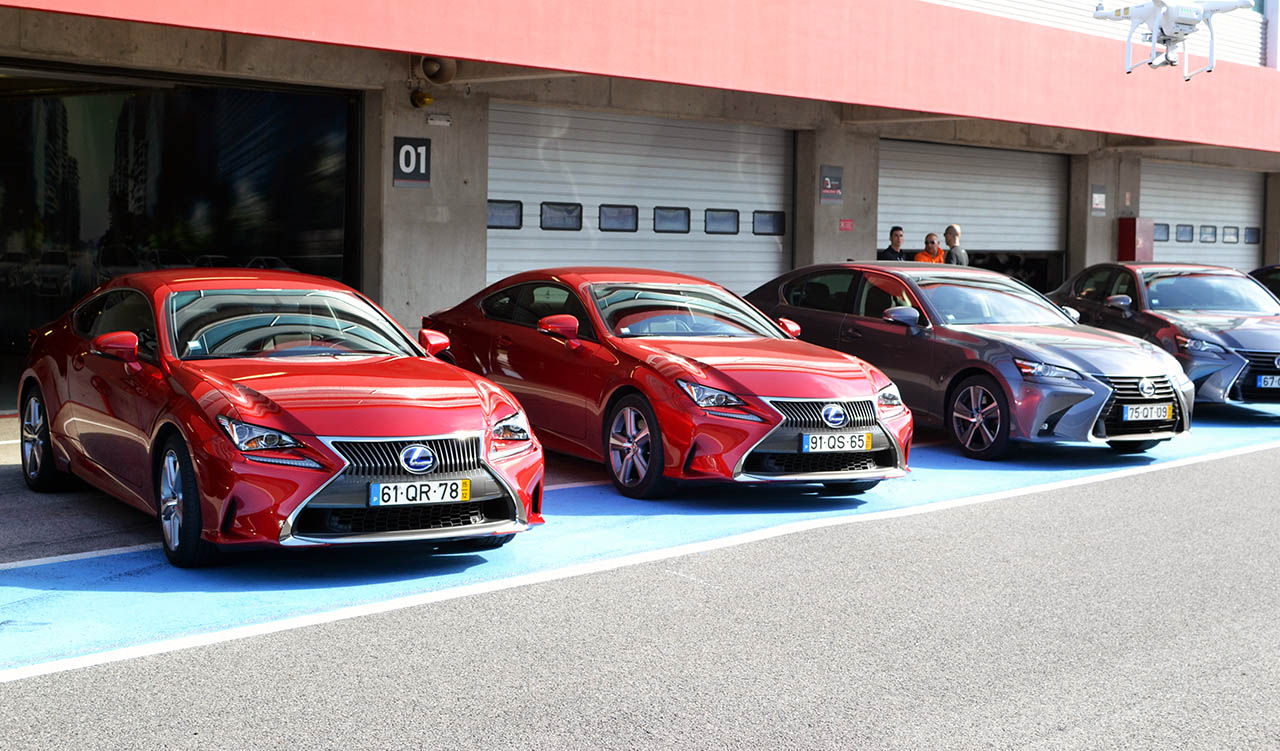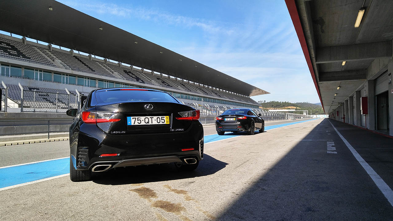Igualmente presente esteve o novo coupé 2+2 RC, disponível em duas motorizações distintas, o 200t de 245cv (veja o ensaio aqui) e o 300h híbrido de 233cv, tendo sido realizado dois tipos de testes, um em estrada em redor do autódromo (pena o percurso não ter sido na Serra de Monchique) e outro na pista do circuito. Se em estrada o comportamento de ambas as versões se diferenciava quase em exclusivo pela actuação mais lenta da caixa CVT (variação contínua), mas em circuito as diferenças foram mais notórias, não só pela actuação da caixa, da disponibilidade do motor e do peso da carroçaria, uma vez que o modelo híbrido pesa mais 50kg que o RC 200t.