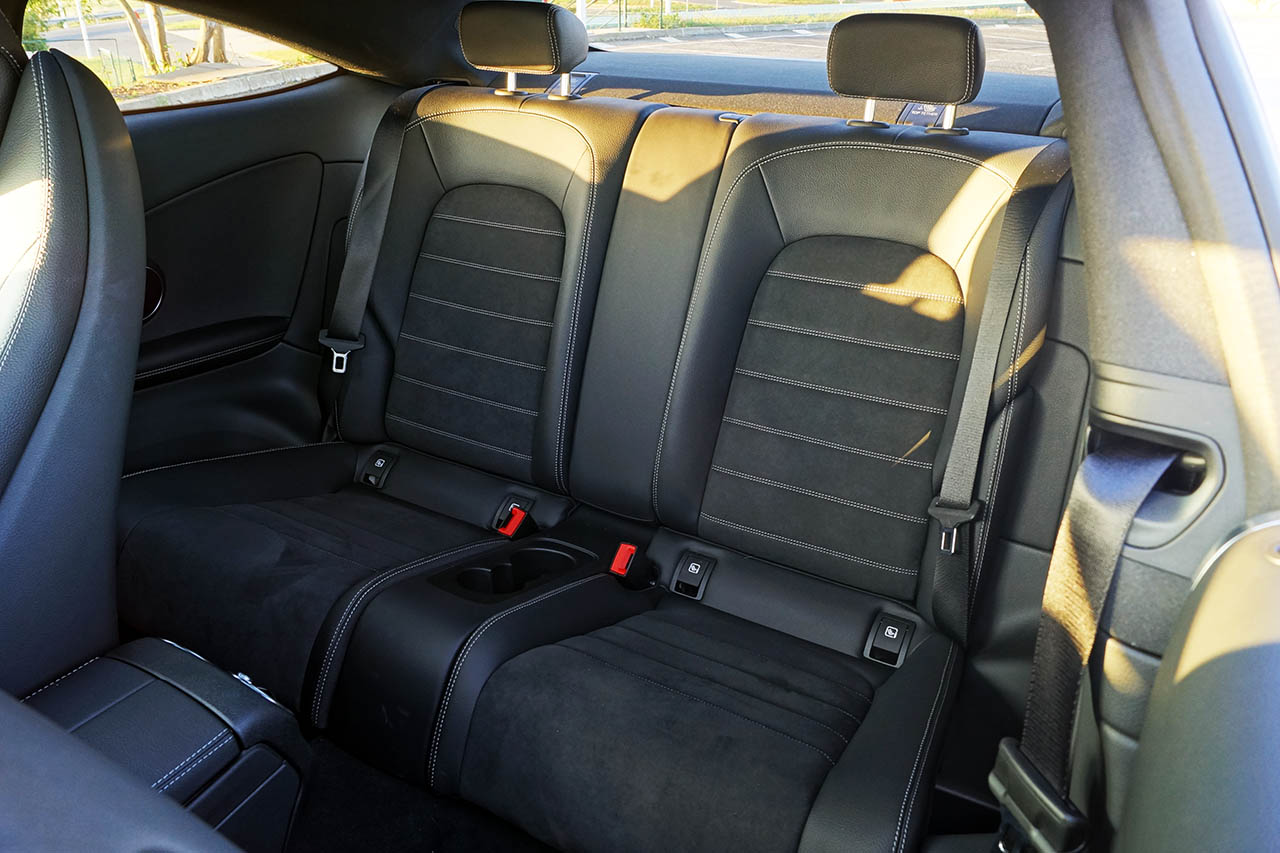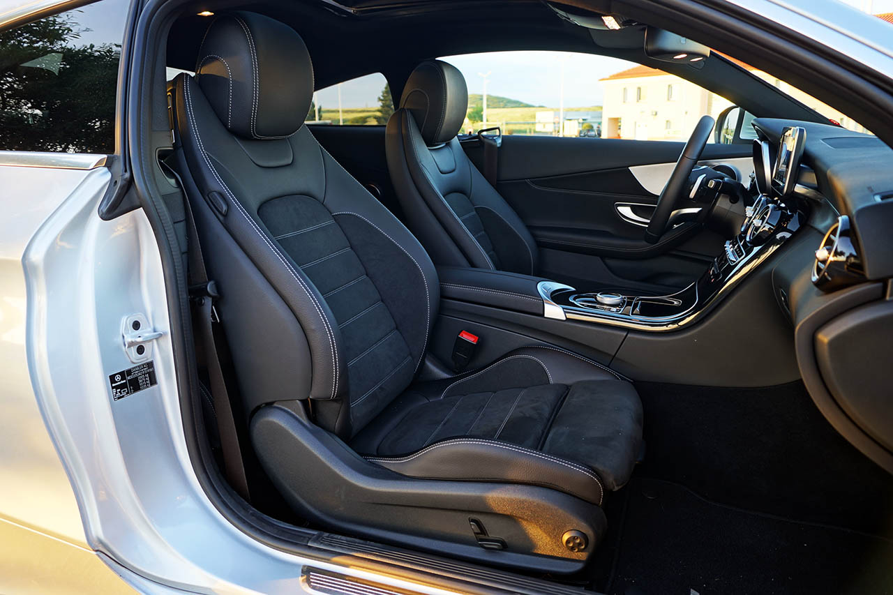 No interior destaque para o conhecido desenho das restantes versões Classe C em comercialização, como a Berlina, a Station e o futuro Cabriolet, onde a volumosa consola central e a agradável ergonomia estão presentes, bem como os menos agradáveis acabamentos em plástico dos mesmos, que teimam em revelar uma ligeira sensação de fragilidade em situações de pisos mais degradados, sendo esta sensação fruto da rigidez da suspensão desportiva do Pack AMG.