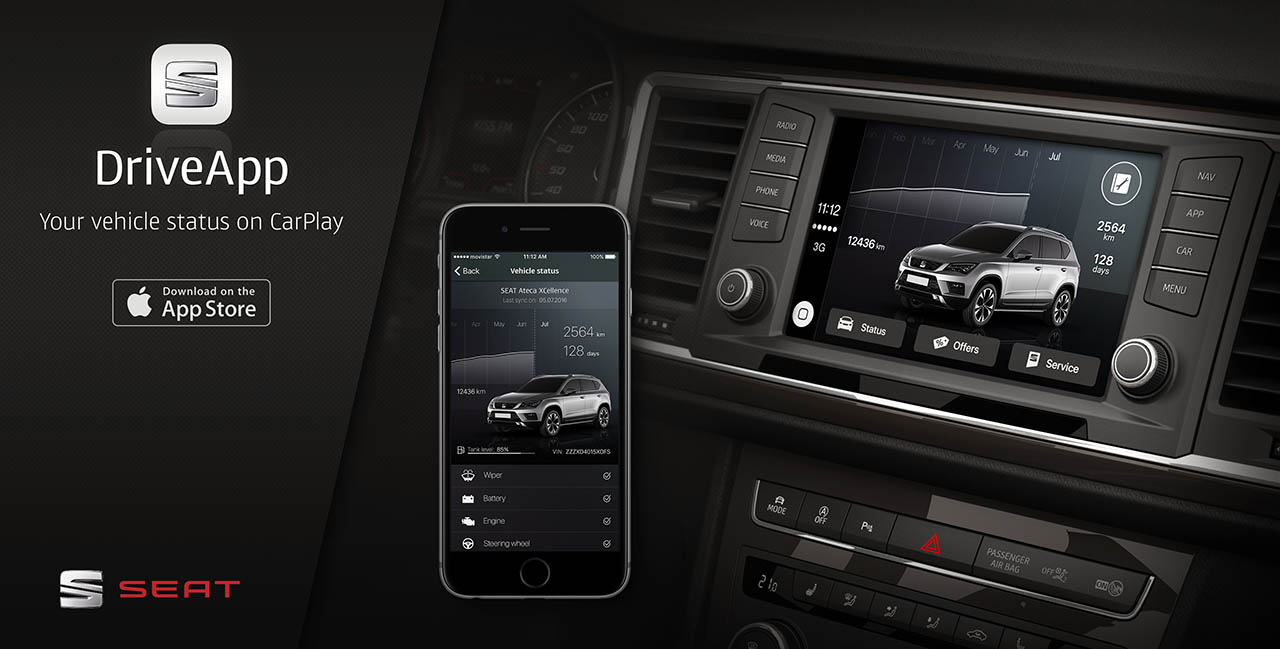 A Seat tornou-se no primeiro construtor automóvel a nível mundial a disponibilizar uma app compatível com o sistema CarPlay. A aplicação Seat DriveApp para plataforma iOS está acessível na App Store permitindo visualizar e gerir o conteúdo da aplicação no iPhone a partir do ecrã e dos comandos do automóvel. A app já está disponível em Espanha e chegará aos restantes mercados onde a Seat está presente nas próximas semanas.