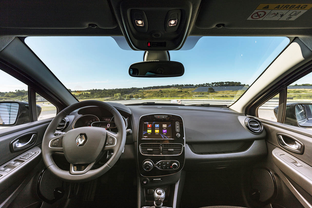 Porém, é no interior que o novo Clio foi verdadeiramente melhorado, estando presentes novos materiais de qualidade superior, como os plásticos e os cromados que passam a ser mais robustos e menos brilhantes, estando o esquema de cores disponível mais sóbrio, embora continue a ser possível personalizar o interior do novo clio. Destaca-se o desaparecimento do excesso de plástico em elementos como o volante, que foi redesenhado, bem como os painéis das portas, e o desenho da consola central, que está agora mais ergonómica e, graças ao uso de plásticos de qualidade superior, evita a criação de ruídos parasitas como ocorreu com algumas unidades pré-actualização.