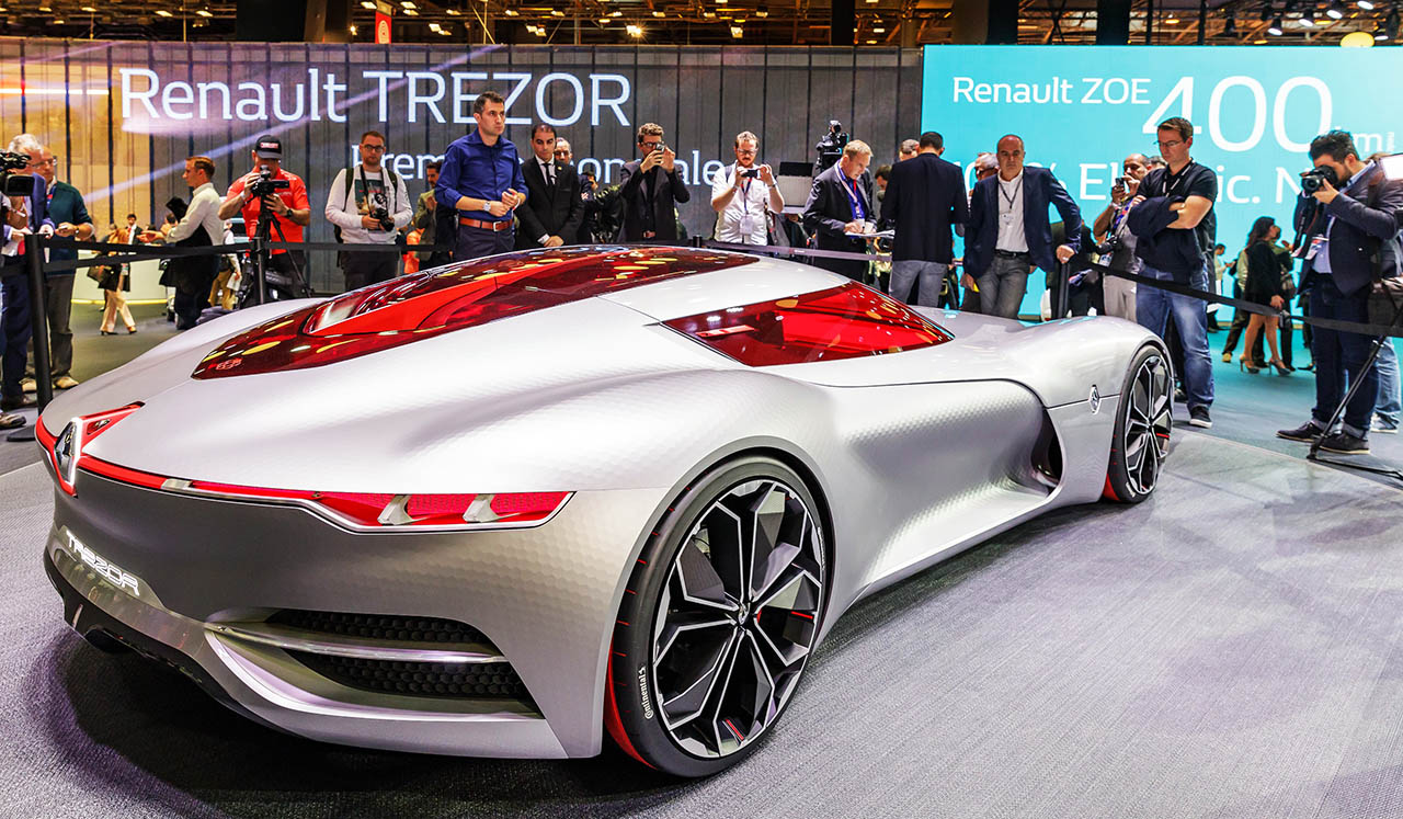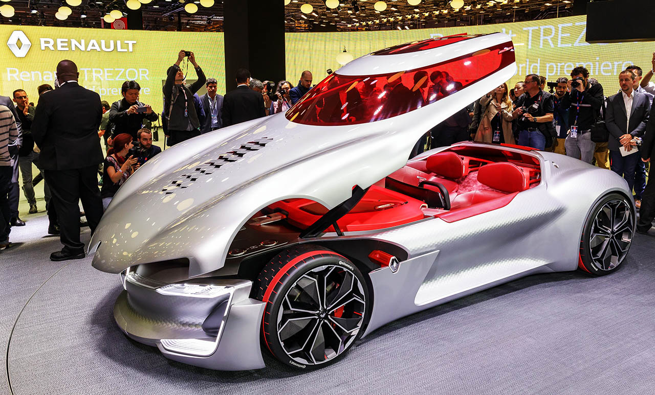 Apesar das escassas possibilidades de vir a ser produzido, o Concept Trezor da Renault não demonstrou ter dificuldades em ser um dos protótipos mais procurados pelos visitantes do Salão, não só devido ao visual futurista e atraente, como pela invulgar abertura de acesso aos lugares dos ocupantes, com toda a superfície superior a abrir e desloca-se para a secção dianteira, como se estivéssemos perante o verdadeiro Batmobile. Mas, além do visual original, o Trezor destaca-se por recorrer ao motor utilizado pela Renault e.dams, a equipa bicampeã da Formula-E, totalmente eléctrica, com os seus 350 cv de potência e 380 Nm de binário, o suficiente para permitir ao Trezor atingir os 100 km/h em menos de 4 segundos. No interior destaque para o visual pioneiro, como o sistema de recolha do volante, quando é activado o modo de condução autónoma.