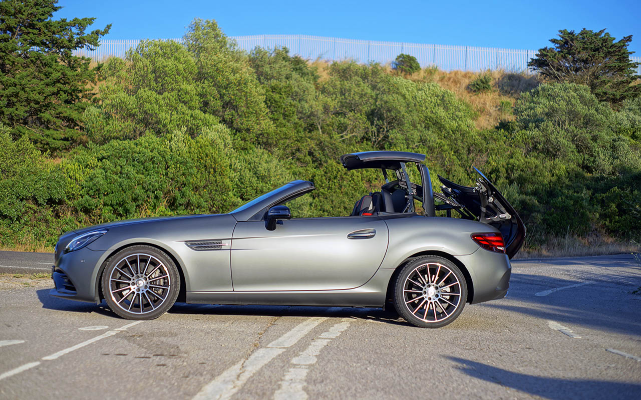 O resultado é excelente, e todas as alterações, incluindo as novas linhas no capot e as linhas laterais mais arredondadas (perdeu o visual angular do último SLK) conferem ao SLC um visual mais elegante, aproximando-o dos “Dream Cars” superiores da marca, como o fenomenal SL (que felizmente mantém a sua designação). A capota rígida removível mantém-se inalterada, demorando meros segundos a abrir ou a fechar, dependendo do estado do tempo, e do seu estado de espírito.