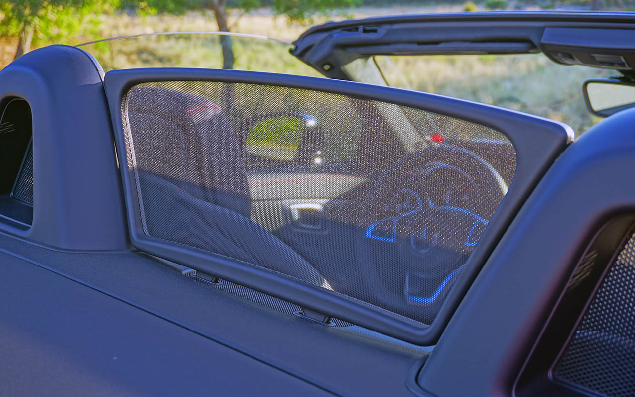Neste último ponto, visto o modelo do parque de imprensa que obtivemos para teste estar equipado com os excelentes AIRSCARF, que garantem um fluxo de ar quente na zona do pescoço, graças à saída de ar embutida nos encostos de cabeça, a posição normal do tejadilho foi recolhida, embora tenha sido fundamental o uso da rede aerodinâmica colocada entre os encostos de cabeça, para evitar a recirculação de ar no interior do habitáculo.