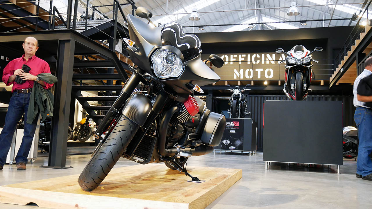 No conhecido espaço Officina Moto, na zona do Braço de Prata, em Lisboa, o representante da Moto Guzzi em Portugal revelou o mais recente membro da família de motos fabricadas em Itália, a novíssima MGX-21 Flying Fortress. Este modelo, que representa a perfeita fusão dos estilos italiano e americano, apresenta-se como sendo muito elegante, futuristas e extremamente sedutora, algo que ficou claramente marcado nas expressões de todos os visitantes na altura de revelação do modelo.