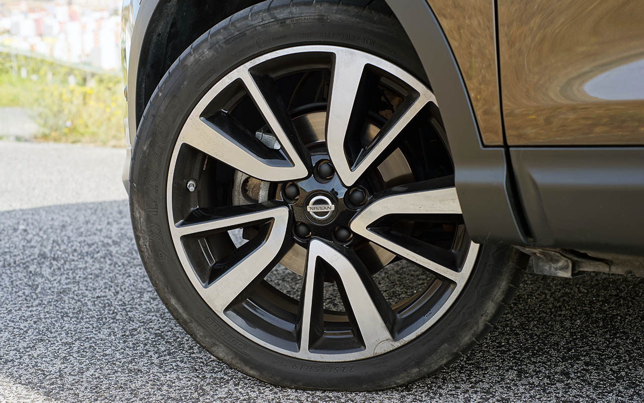 Estas, por sua vez, encontram-se acompanhadas por pneus Dunlop SportMaxx RT de medidas 225/45 R19 W, modelo esse que segundo a própria Dunlop, são pneus indicados para uma condução mais dinâmica e eficiente, o que não é propriamente o objectivo de um crossover com tracção às quatro rodas… digo eu. Mas tendo em conta que, muito provavelmente 99% dos compradores de um Qashqai, o máximo de aventuras fora do alfalto que deverão fazer será estacionar o carro nos parques de terra batida das praias na Costa da Caparica, então estes pneus correspondem na perfeição para a utilização e necessidades deste Qashqai.