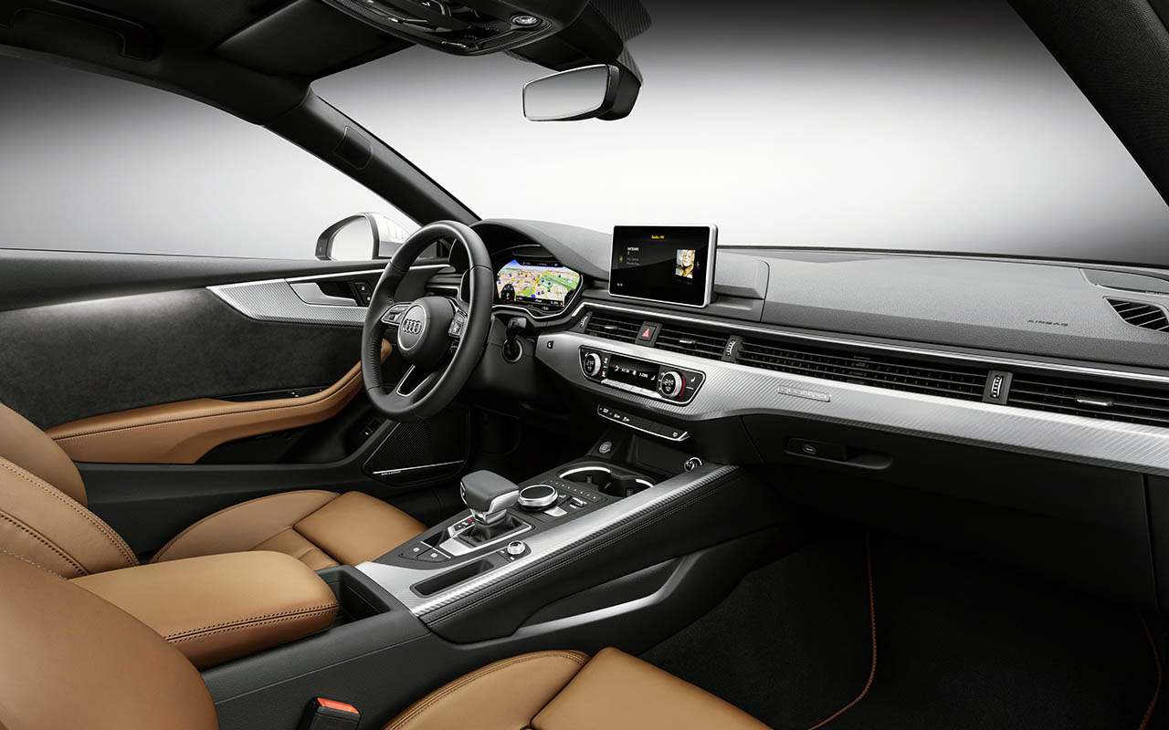 O interior recebe não só o visual como todas as tecnologias já utilizadas no Audi Q7 e A4, como o sistema Audi Virtual Cockpit, composto por um ecrã TFT de 12,3 polegadas que substitui o tradicional painel de instrumentos, sistema de infoentretenimento MMI Plus com ecrã de 7 a 8,3 polegadas, que permite não só usar os serviços Audi MMI Connect, bem como funcionar em conjunto com o seu Smartphone iOS e Android, através do Audi Smartphone Interface. Este sistema poderá funcionar com o opcional (€1345) sistema de som 3D da Bang & Olufsen, com 19 colunas e 755 Watts de potência.