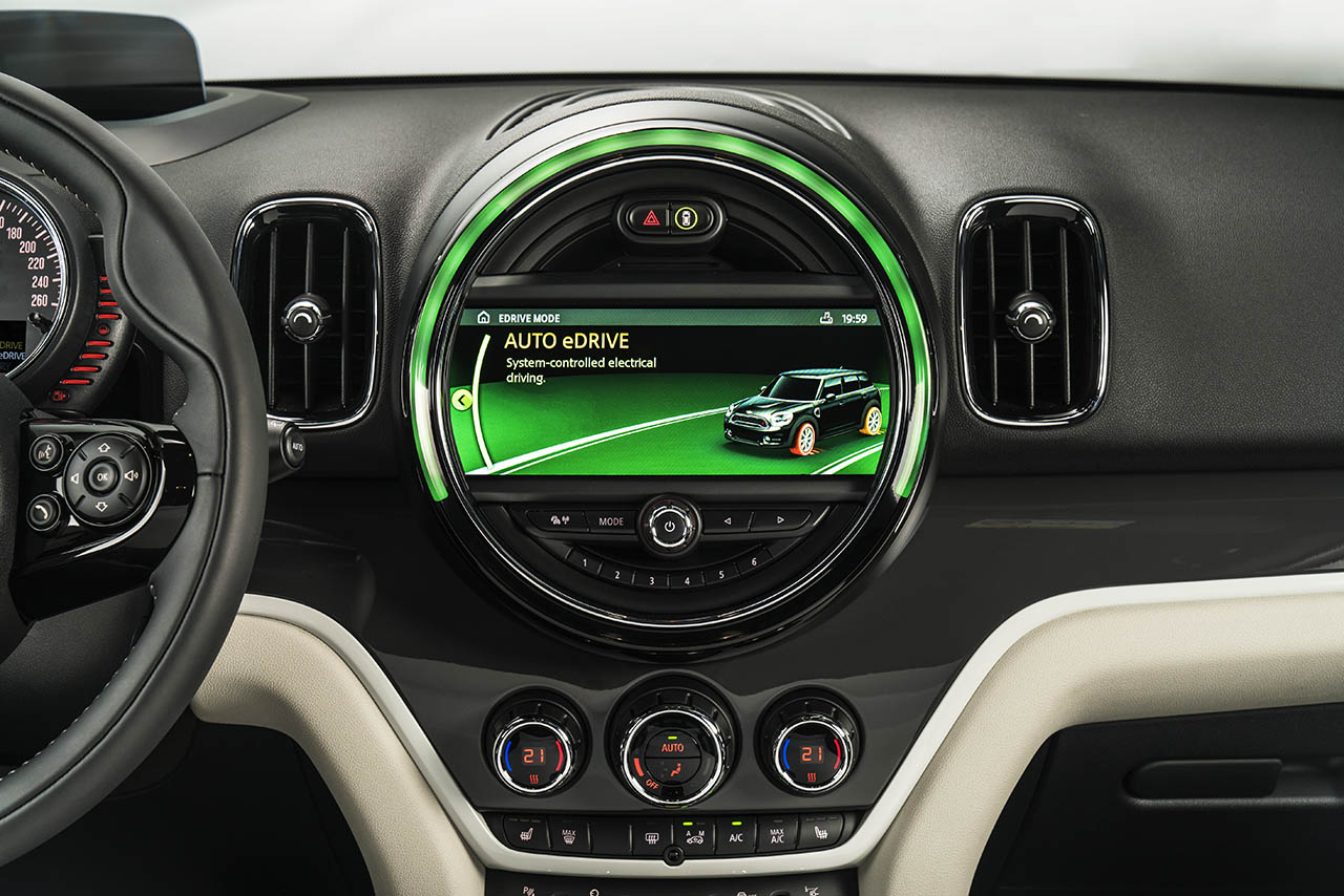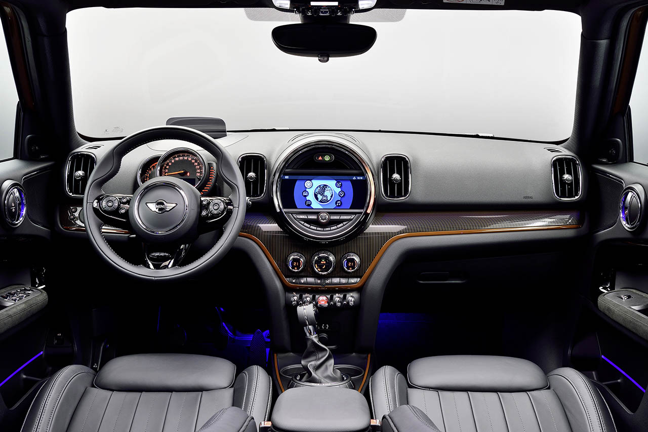 No interior, embora predomine o estilo Mini, encontra-se presente o primeiro ecrã táctil para o sistema de infoentretenimento de um Mini, desde que opte pela versão topo de gama. De resto estão presentes as habituais soluções de assistência à condução e segurança, como o sistema de alerta de colisão com travagem de emergência ou os opcionais Driving Assist, sensores e câmaras de estacionamento, sistema de auxílio ao estacionamento e head-up display.