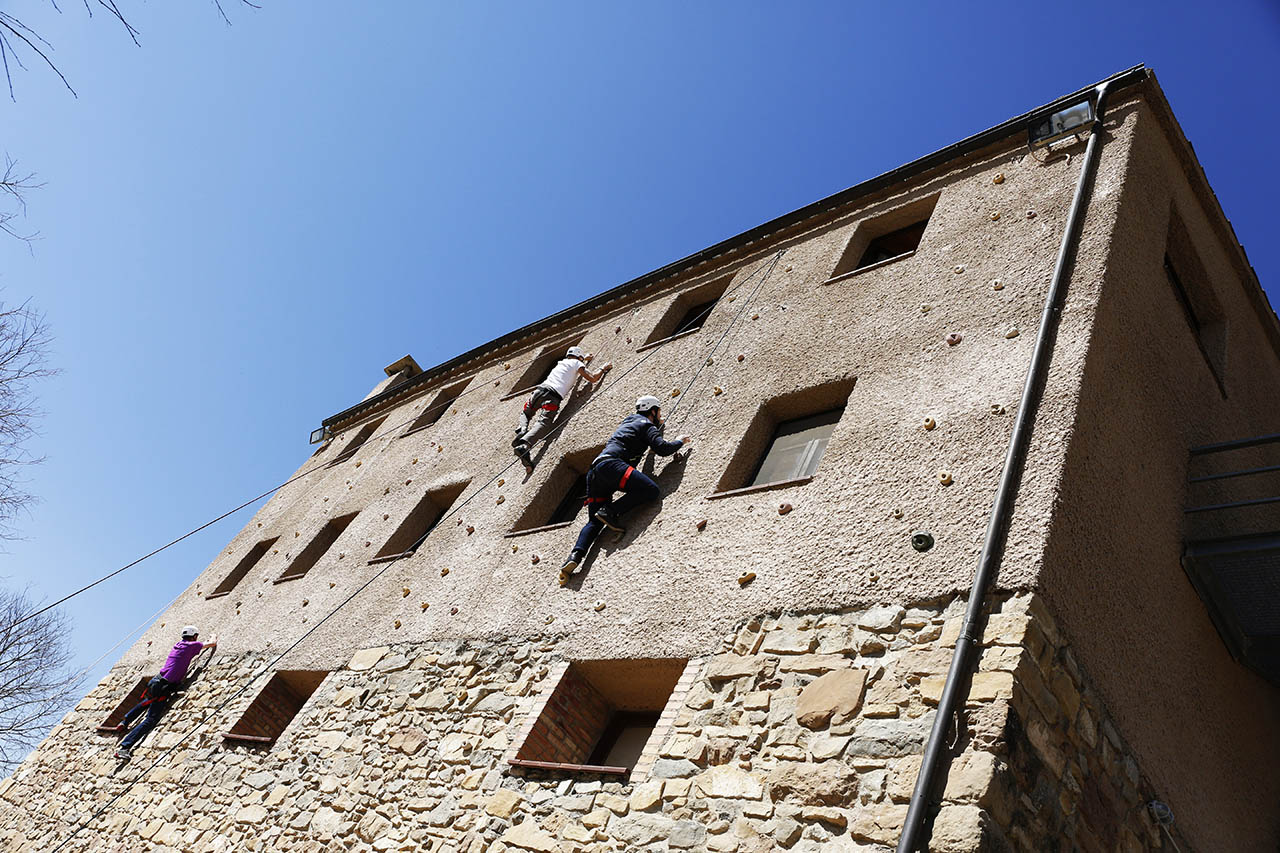 Para tal tivemos o prazer de contar com a presença de Ferran Latorre, um profissional que conseguiu escalar as mais altas montanhas do mundo, como o Evereste, K2 e muitas outras. A sua ajuda e orientação foi fundamental para desfrutarmos das provas reservadas para a primeira parte do dia, que dependeram apenas das capacidades físicas de cada um para conseguirmos escalar uma parede de um edifício com quatro pisos, ou fazer slide numa distância considerável.