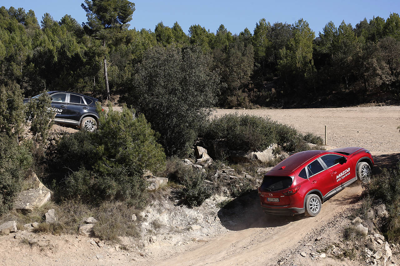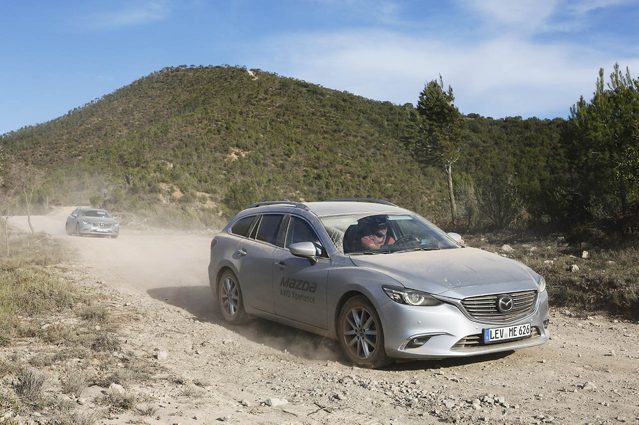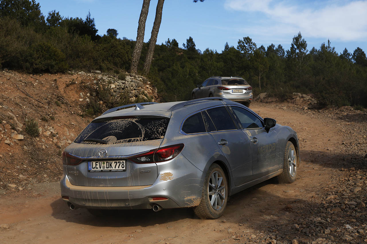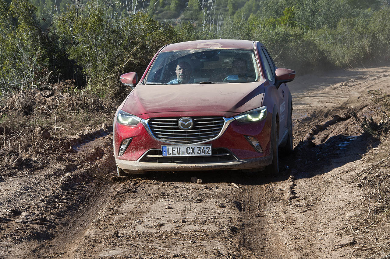 Começando pelo pequeno CX-3, este surpreendente crossover da Mazda equipado com a motorização SKYACTIV-D 1.5 de 105 cavalos percorreu um percurso em terra batida que contava com a presença de elementos como arbustos, troncos, pedra, gravilha e até mesmo lama, tendo o mesmo desempenhado todo o trajecto de forma exemplar. Este percurso acabaria mais tarde por ser repetido, em parte, pela carrinha Mazda 6 (equipada com o motor SKYACTIV-D 2.2 de 175 cavalos), embora sem o trajecto com a lama, tendo sido optada uma volta mais longa, que permitiu desfrutar da paisagem do local.