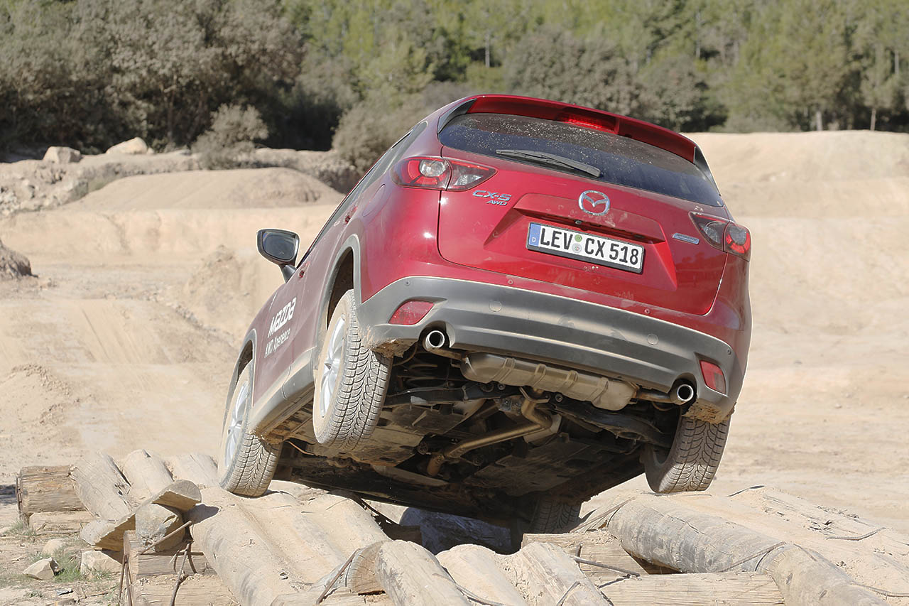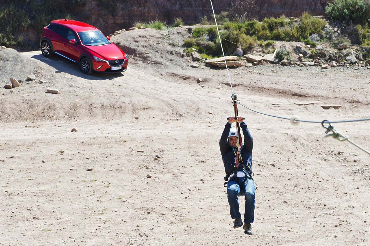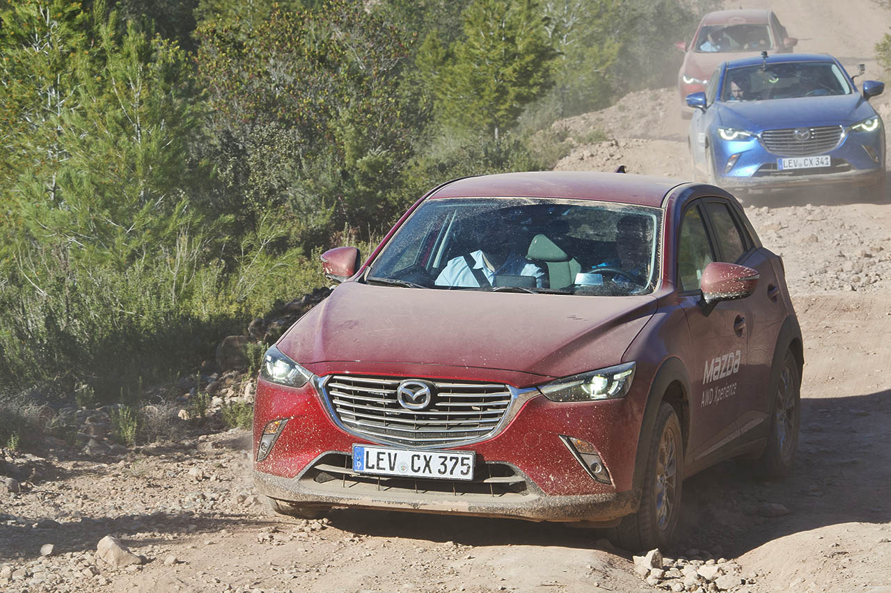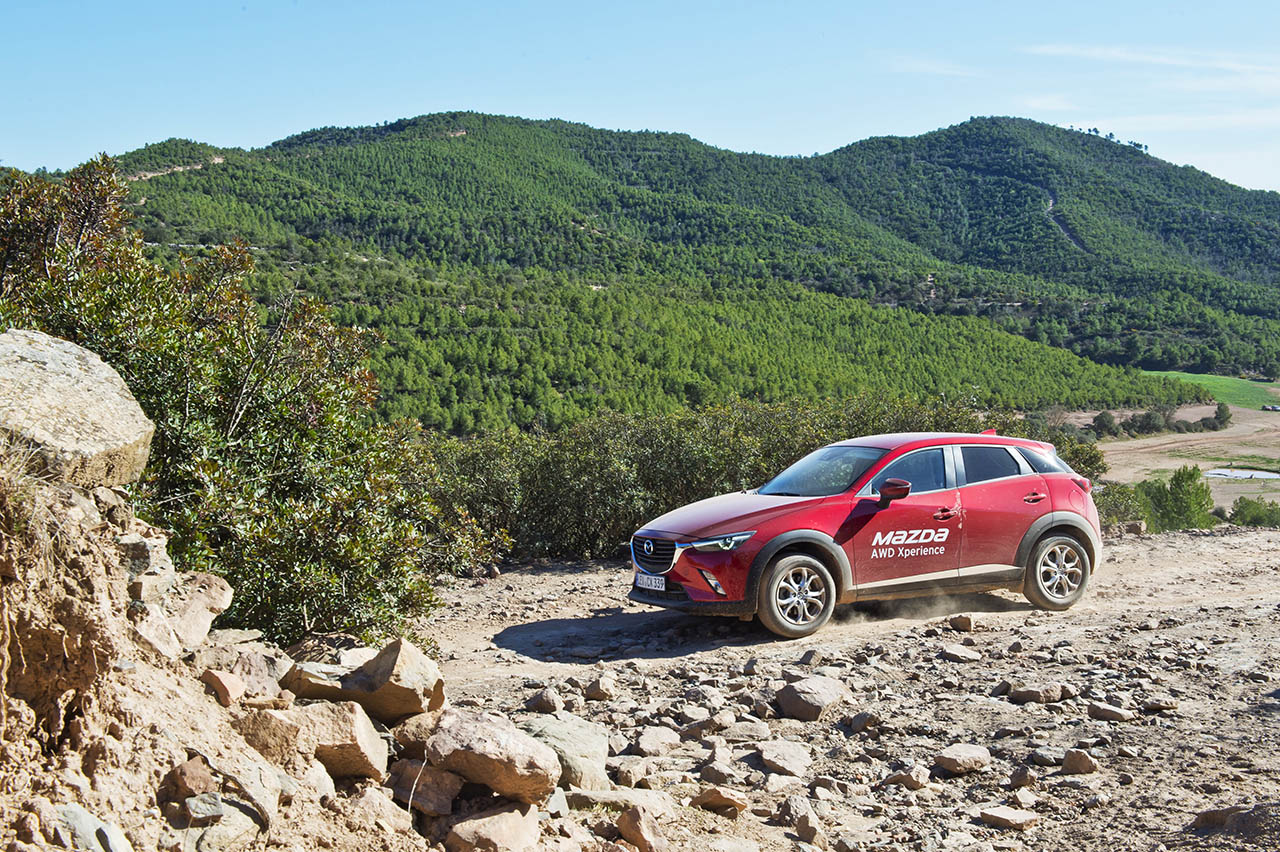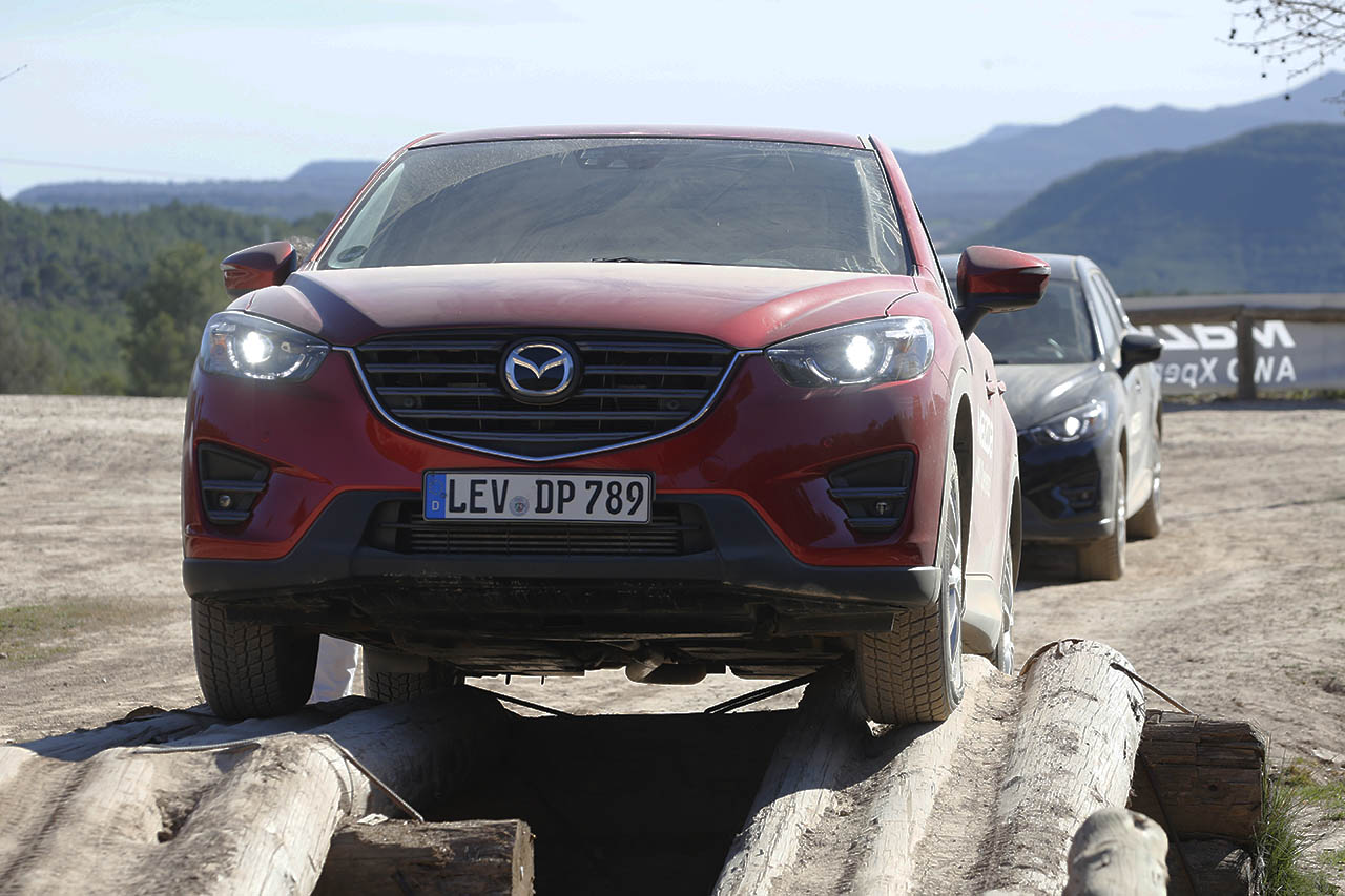 Começando pelo pequeno CX-3, este surpreendente crossover da Mazda equipado com a motorização SKYACTIV-D 1.5 de 105 cavalos percorreu um percurso em terra batida que contava com a presença de elementos como arbustos, troncos, pedra, gravilha e até mesmo lama, tendo o mesmo desempenhado todo o trajecto de forma exemplar. Este percurso acabaria mais tarde por ser repetido, em parte, pela carrinha Mazda 6 (equipada com o motor SKYACTIV-D 2.2 de 175 cavalos), embora sem o trajecto com a lama, tendo sido optada uma volta mais longa, que permitiu desfrutar da paisagem do local.