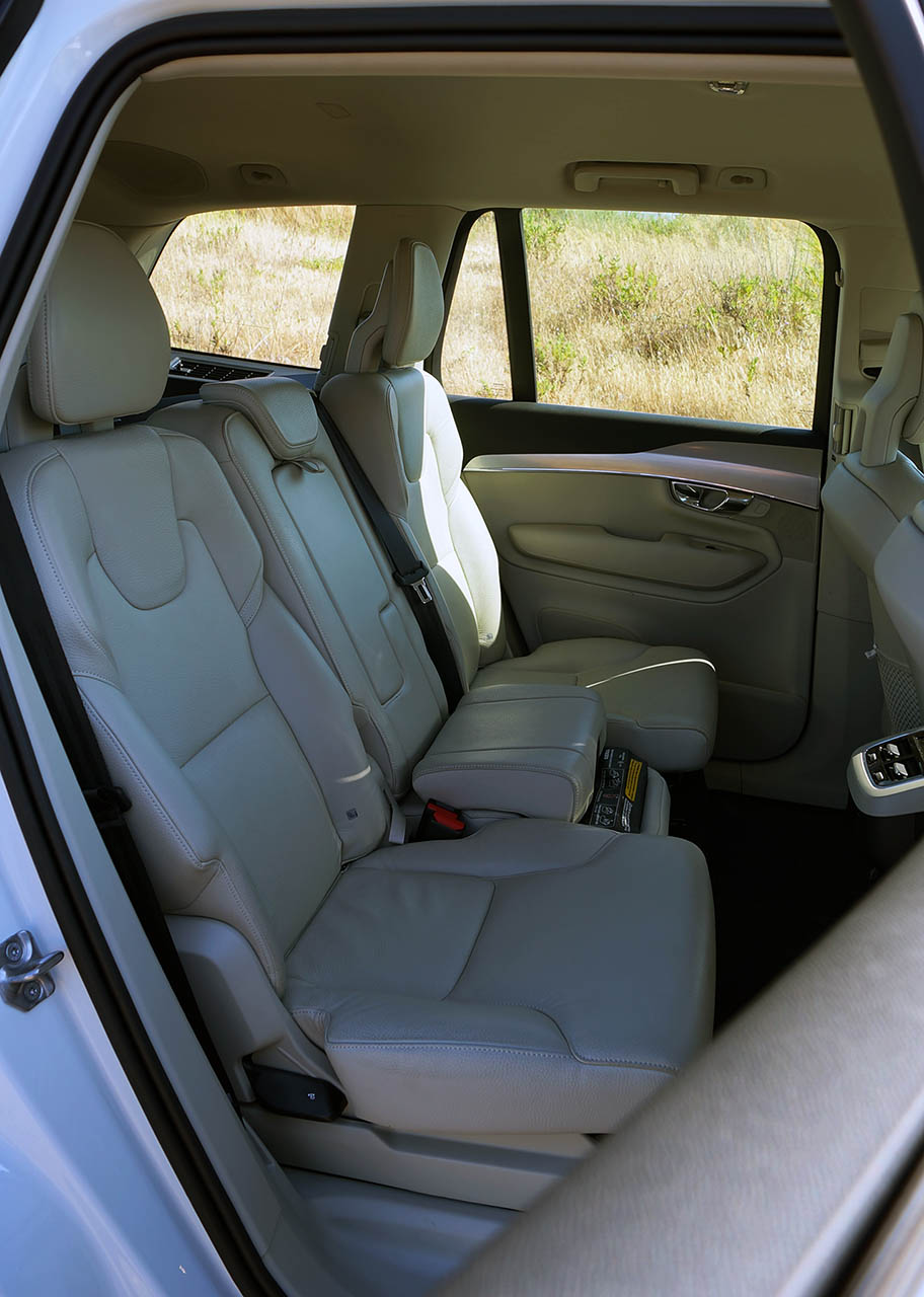 E já que estou a falar em conforto e luxo, porque não referir que os bancos do XC90, desenhados específicamente para este modelo e ostentando uma original etiqueta com as cores da bandeira Sueca, são dos melhores bancos que alguma vez irá experimentar, tanto em termos de conforto como em termos de ergonomia, podendo estes ser totalmente regulados electronicamente, receber aquecimento (os lugares traseiros também) e função de massagem. A estrutura do XC90 foi desenhada a pensar em famílias numerosas, razão pelo qual poderá usufruir de dois lugares adicionais numa terceira fila de bancos rebatíveis, embora seja possível escolher ter apenas cinco lugares, uma solução não recomendável, mas possível.